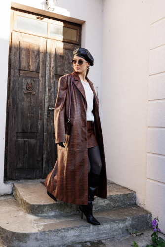 Косынка из эко-кожи — это модный аксессуар, который служит как стильное дополнение к образу. Косынка с центральной вставкой и ее углы внизу на кнопке, для лучшей фиксации при различных вариантах носки. Косынка на подкладке 100% ПЭ