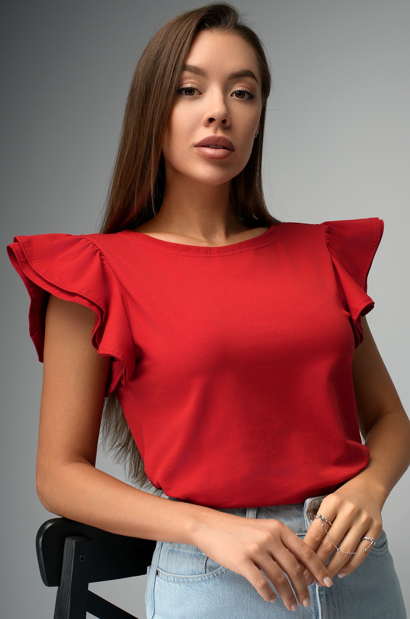 Красная блуза для женщин универсальна. Классический круглый вырез и аккуратная посадка подчёркивают достоинства фигуры и придают образу лёгкую романтичность.