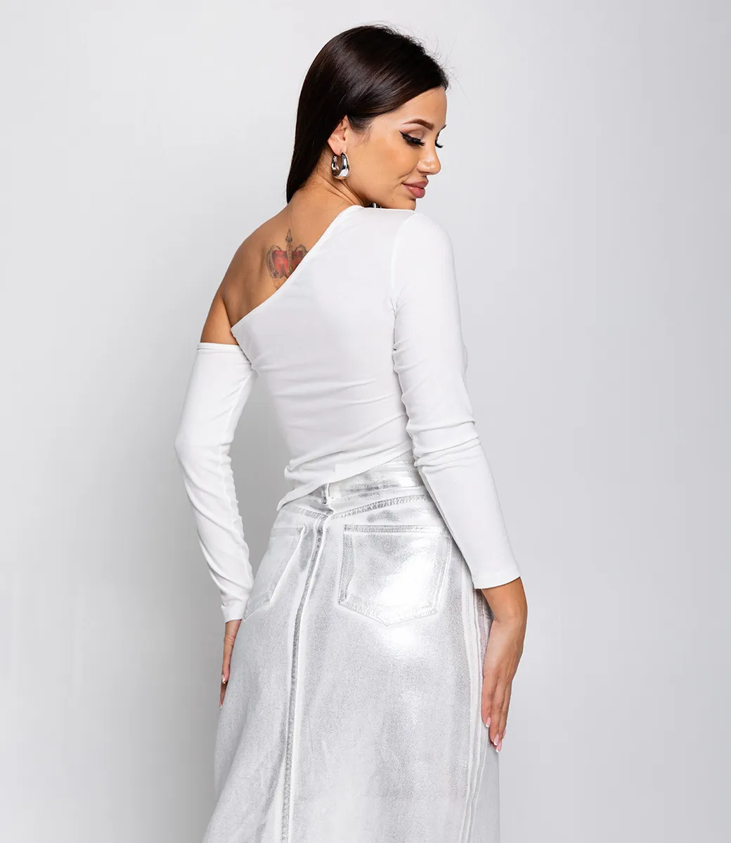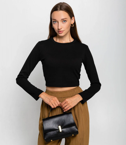 Укороченный кроп топ - это верхняя часть одежды с обрезанным подолом, который обычно заканчивается на уровне талии или ниже. Такой крой создает модный и современный вид, позволяя показать красивую линию талии и подчеркнуть формы. Комбинируйте кроп топ с высокой посадкой джинсами, юбкой или шортами для создания элегантного и стильного образа. Открытое плечо добавляет пикантности и сексуальности к кроп топу. Длинные рукава придают кроп топу изысканный и стильный вид.