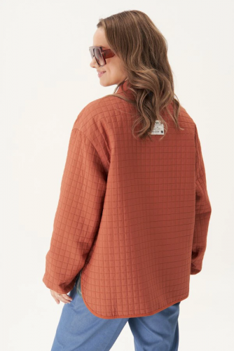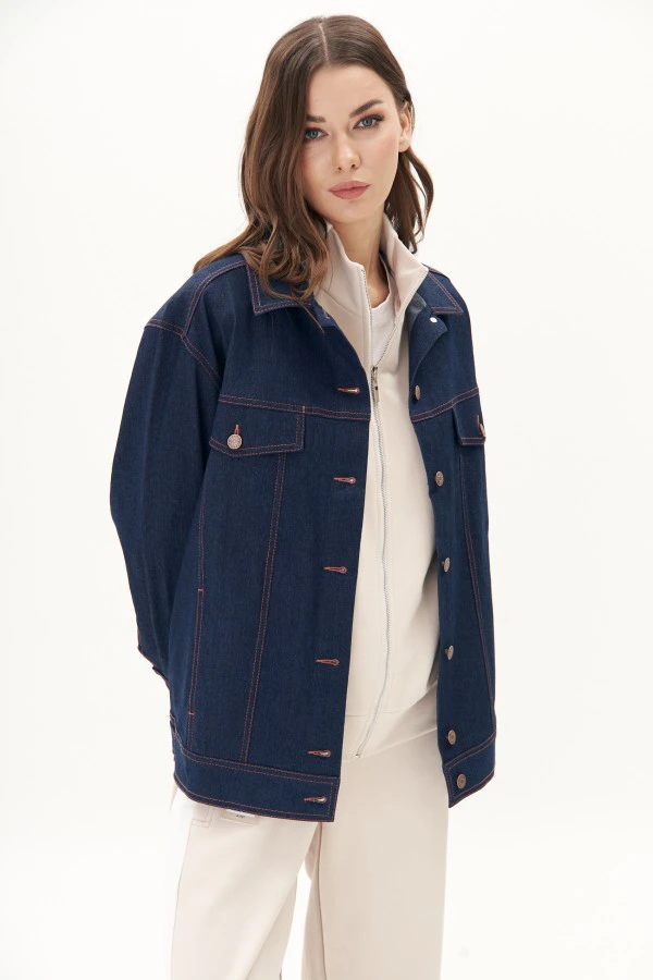 Джут-популярный повседневный образ, который можно встретить практически повсеместно. Он особенно популярен среди тех, кто предпочитает активный образ жизни, свободу и комфорт. Силуэт-оверсайз, покрой рубашечный, воротник классический, застёжка центральная на джинсовые пуговицы. Полочка с отрезными кокетками, карманами с клапаном, вертикальными рельефами и карманом в боковом рельефе. Спинка с отрезной кокеткой и вертикальными рельефами. Рукав с локтевым швом, разрезом, и притачной манжетой. По низу притачной пояс, регулирующийся боковыми патами.Длина около 78см.Длина рукава с плечом около 72 см.