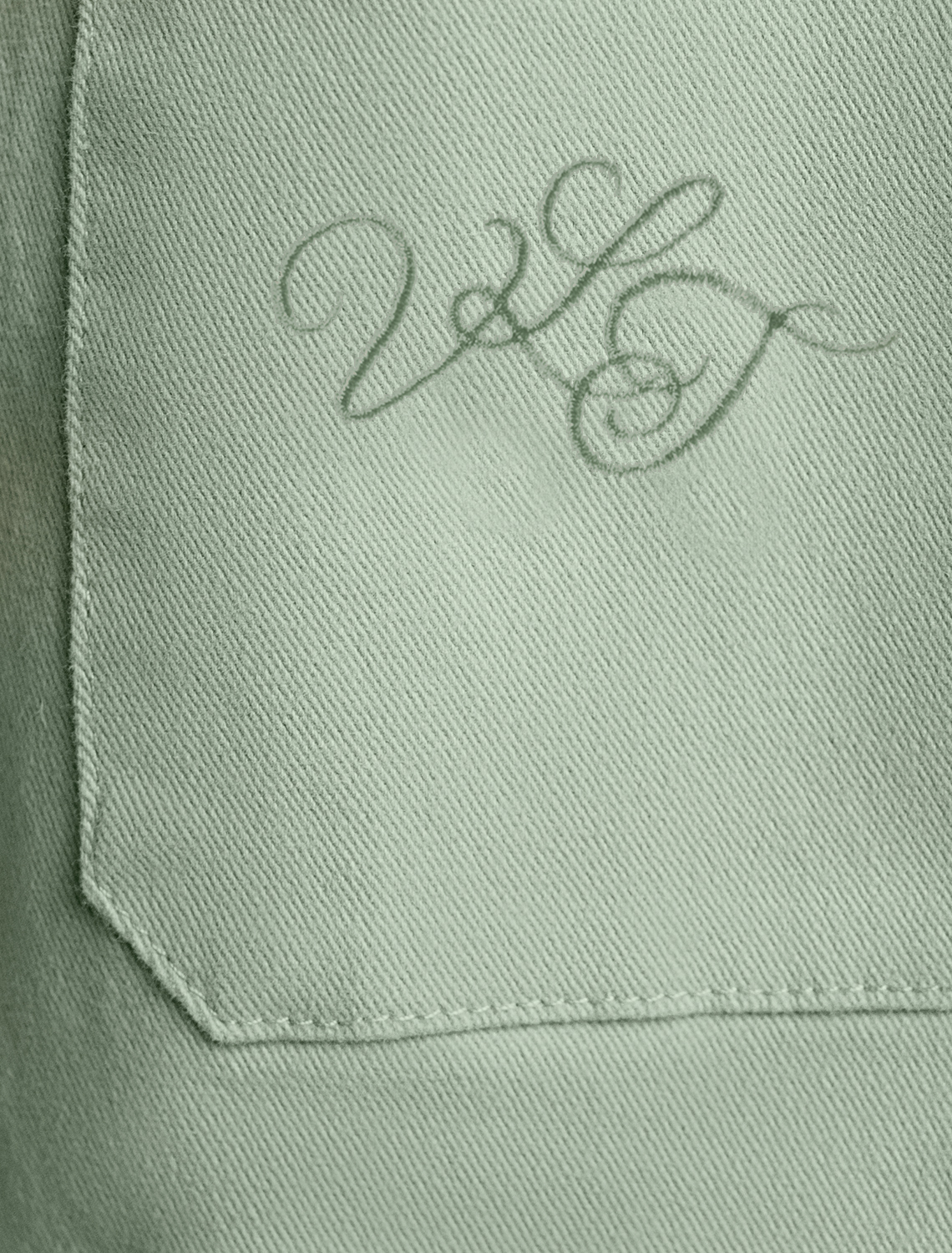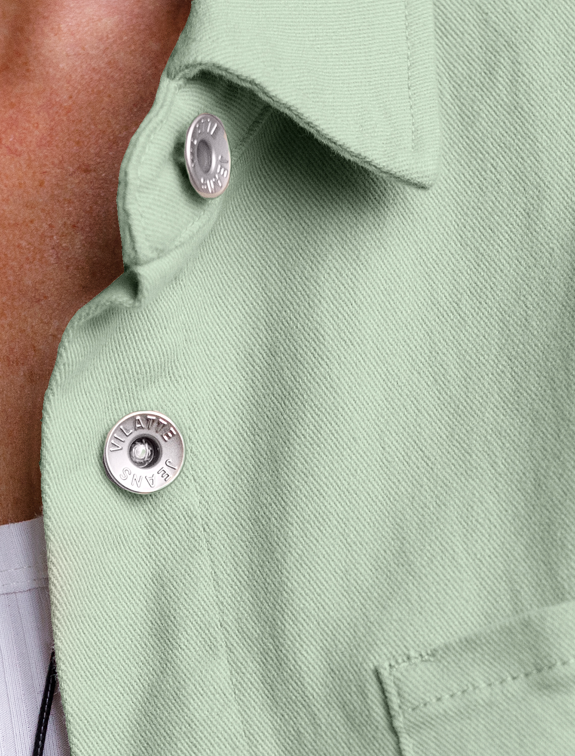 Куртка выполнена из денима с эластаном. Модель с трендовым открытым срезом дополнена одним накладным карманом с вышитым логотипом и брендированными металлическими пуговицами. Изделие сочетается в комплекте с юбкой D56.114 и брюками D54.130, D54.137 светло-оливковый