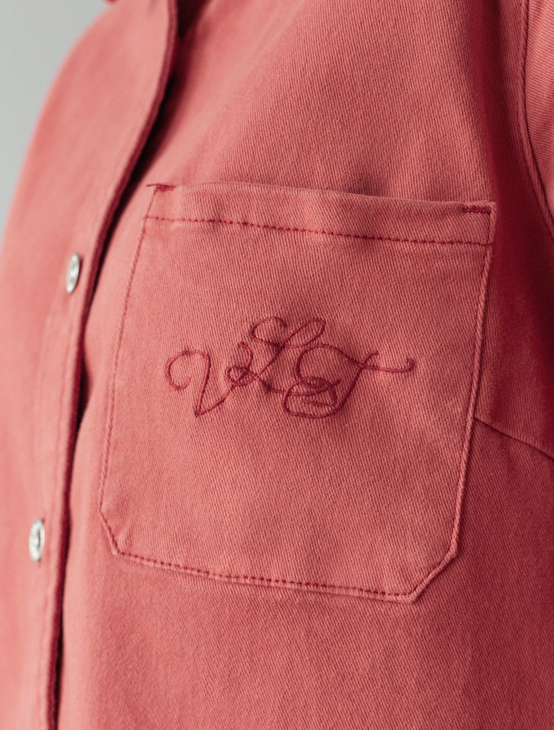 Куртка выполнена из денима с эластаном. Модель с трендовым открытым срезом дополнена одним накладным карманом с вышитым логотипом и брендированными металлическими пуговицами. Изделие сочетается в комплекте с юбкой D56.114 и брюками D54.130, D54.137 темно-коралловый