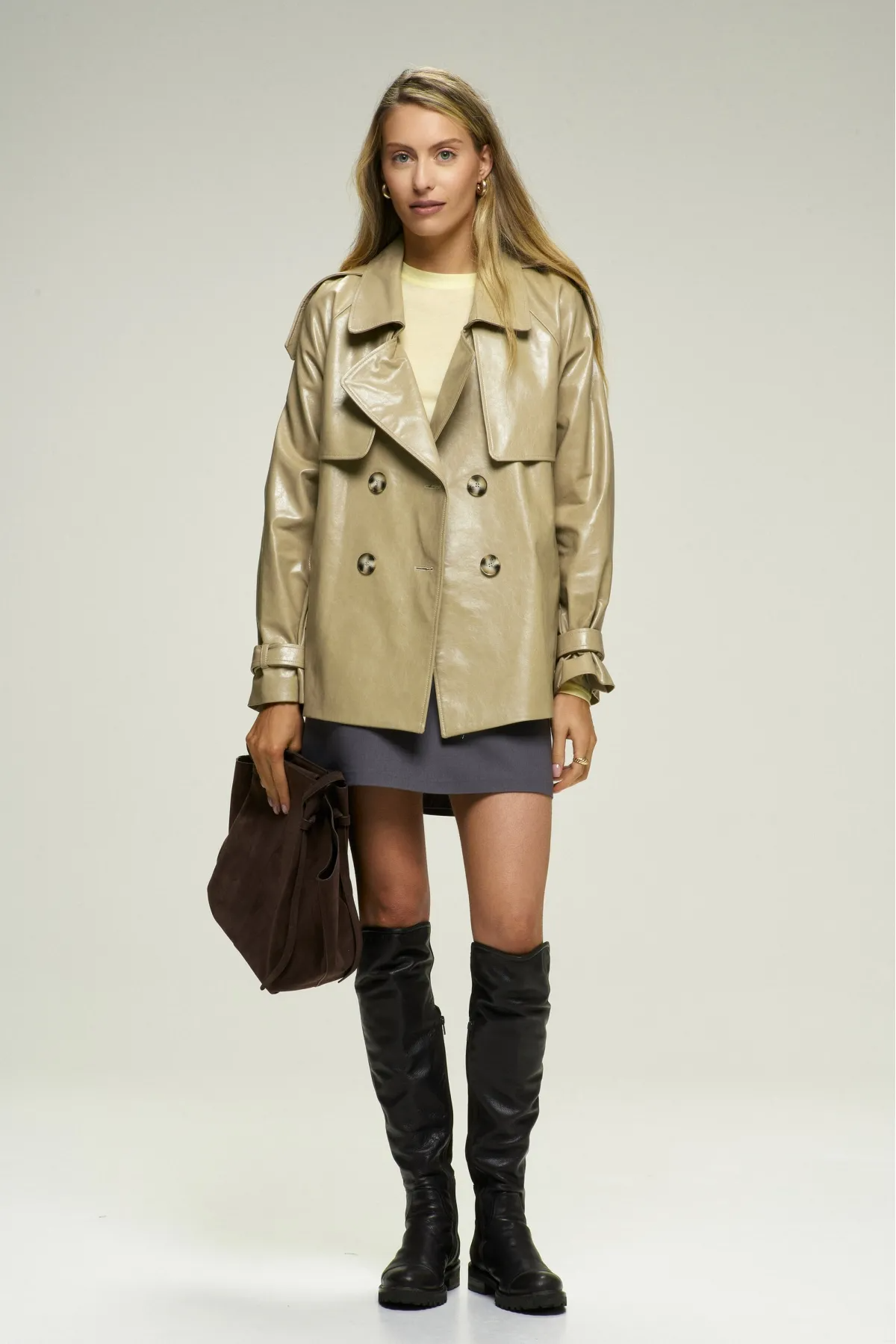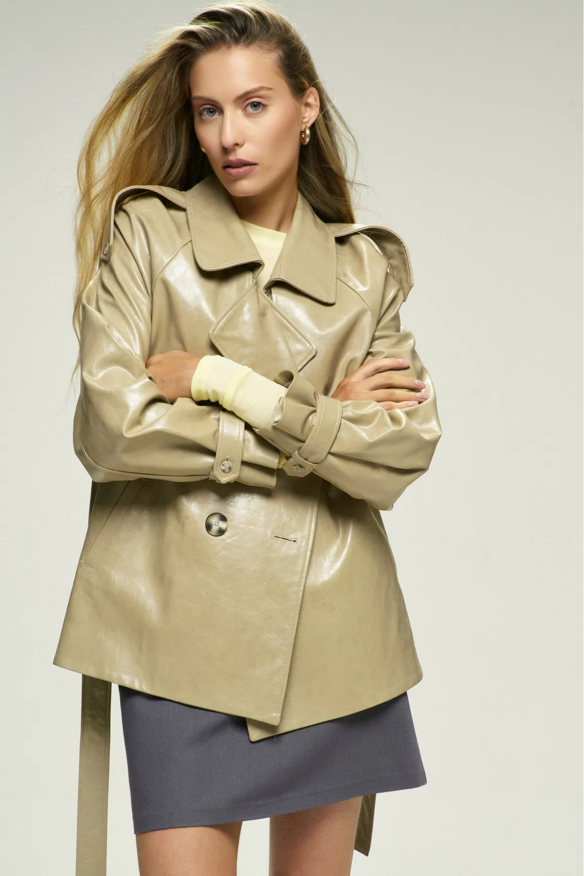 Куртка из эко-кожи – современная интерпретация классического тренча. Эта укороченная модель с рукавом реглан сочетает в себе элегантность и удобство, а пояс позволяет подчеркнуть силуэт, делая образ более утонченным. Куртка доступна в нескольких цветах, что позволяет подобрать вариант под ваш стиль и настроение.