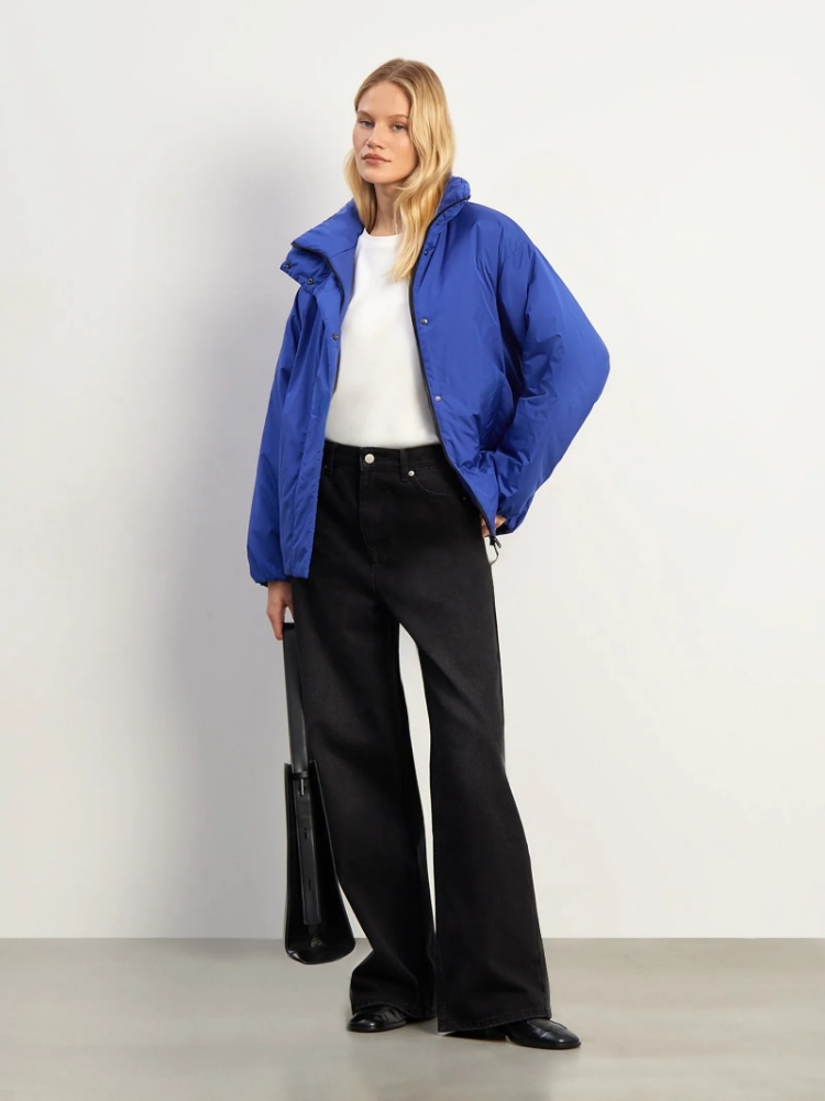 Куртка ультрамаринового цвета сделает весну ярче. Укороченная модель прямого кроя дополнена практичным воротником-стойкой, который защитит горло от ветра. Широкая планка и карманы по бокам гармонично завершают композицию. Изделие утеплено синтепоном. Температурный режим до +5°C