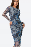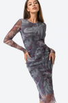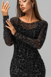 Покорите вечерние события с потрясающим платьем-сеткой с леопардовым принтом! Это нарядное женское платье с длинными рукавами и круглым вырезом привнесет в образ неотразимую элегантность и диковинный шарм, идеально подходя для любого вечернего выхода.