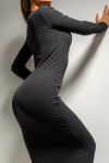 Платье имеет облегающий крой и длину миди, что делает его подходящим для создания утонченного и элегантного образа. Длинные рукава и леопардовый рисунок придают модели выразительный и экзотический вид.