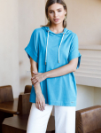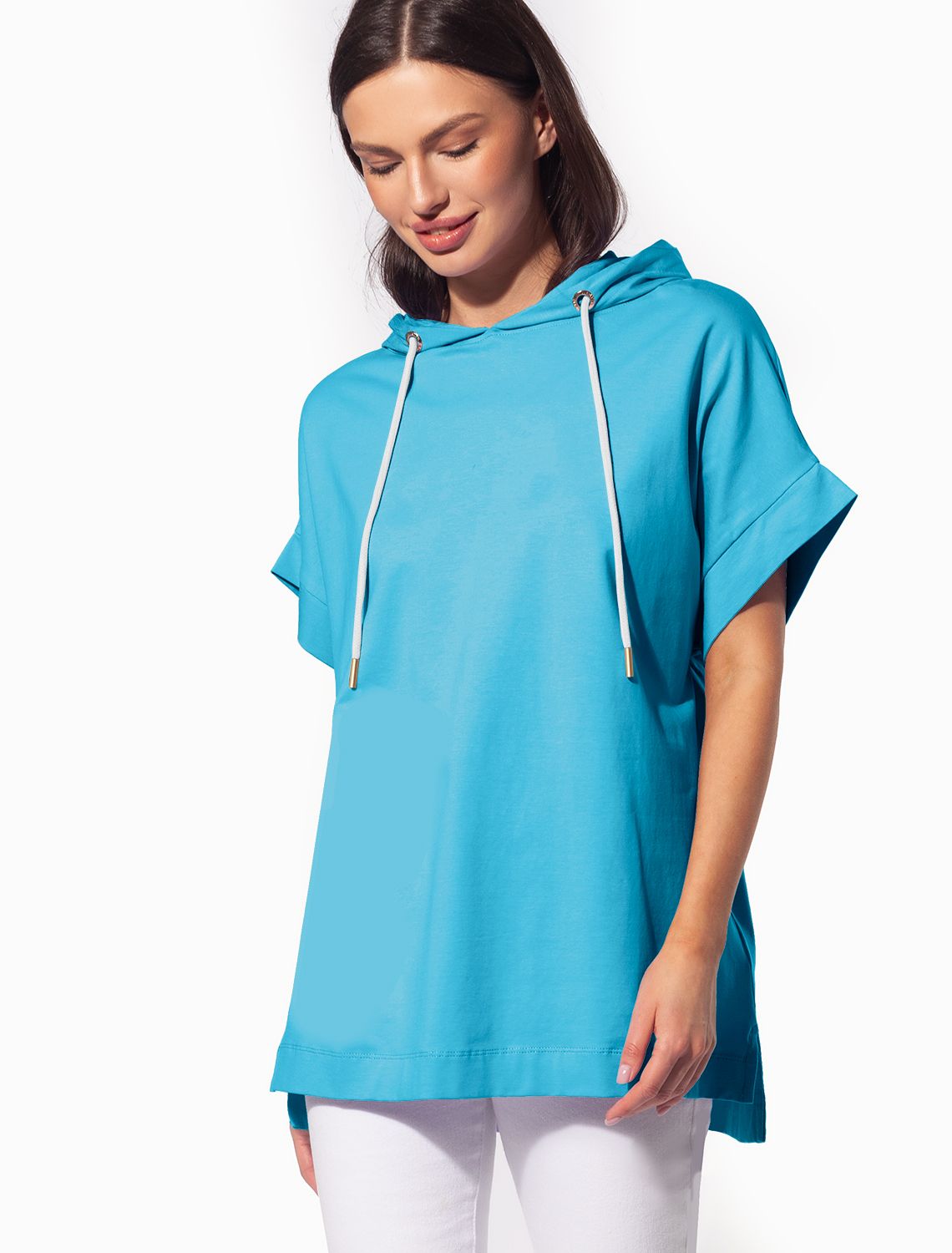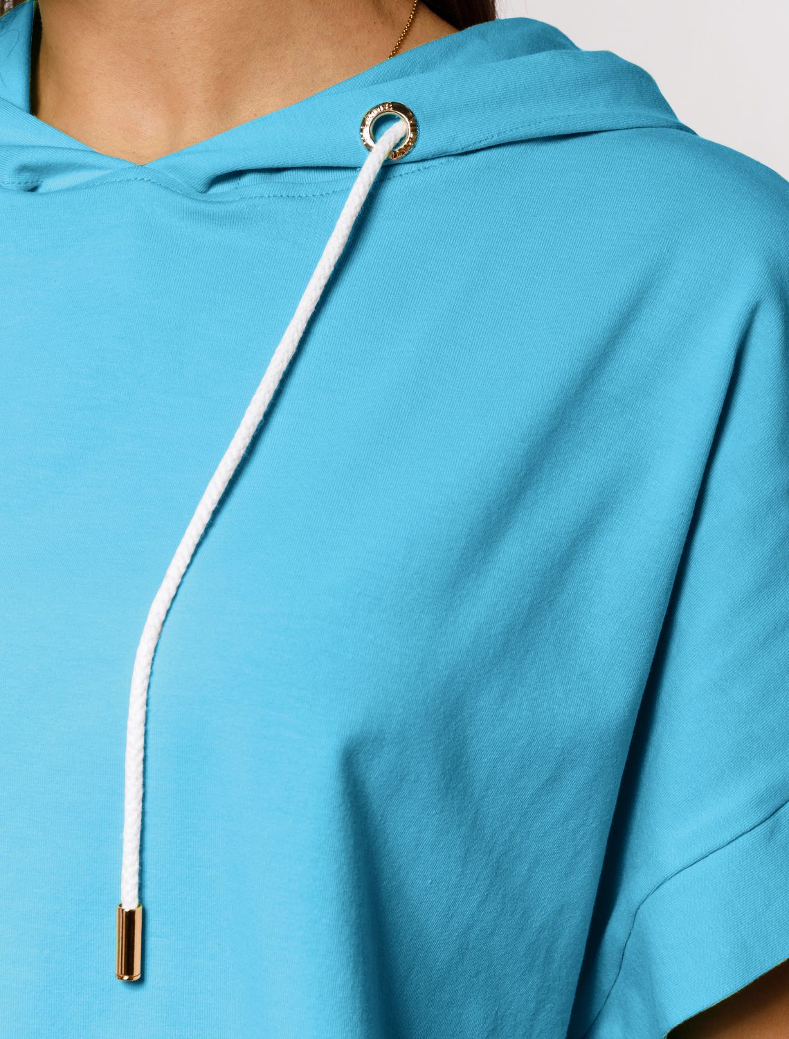 Летнее худи over-size из премиального хлопка с фирменной фурнитурой золотистого цвета D49.838 светло-голубой