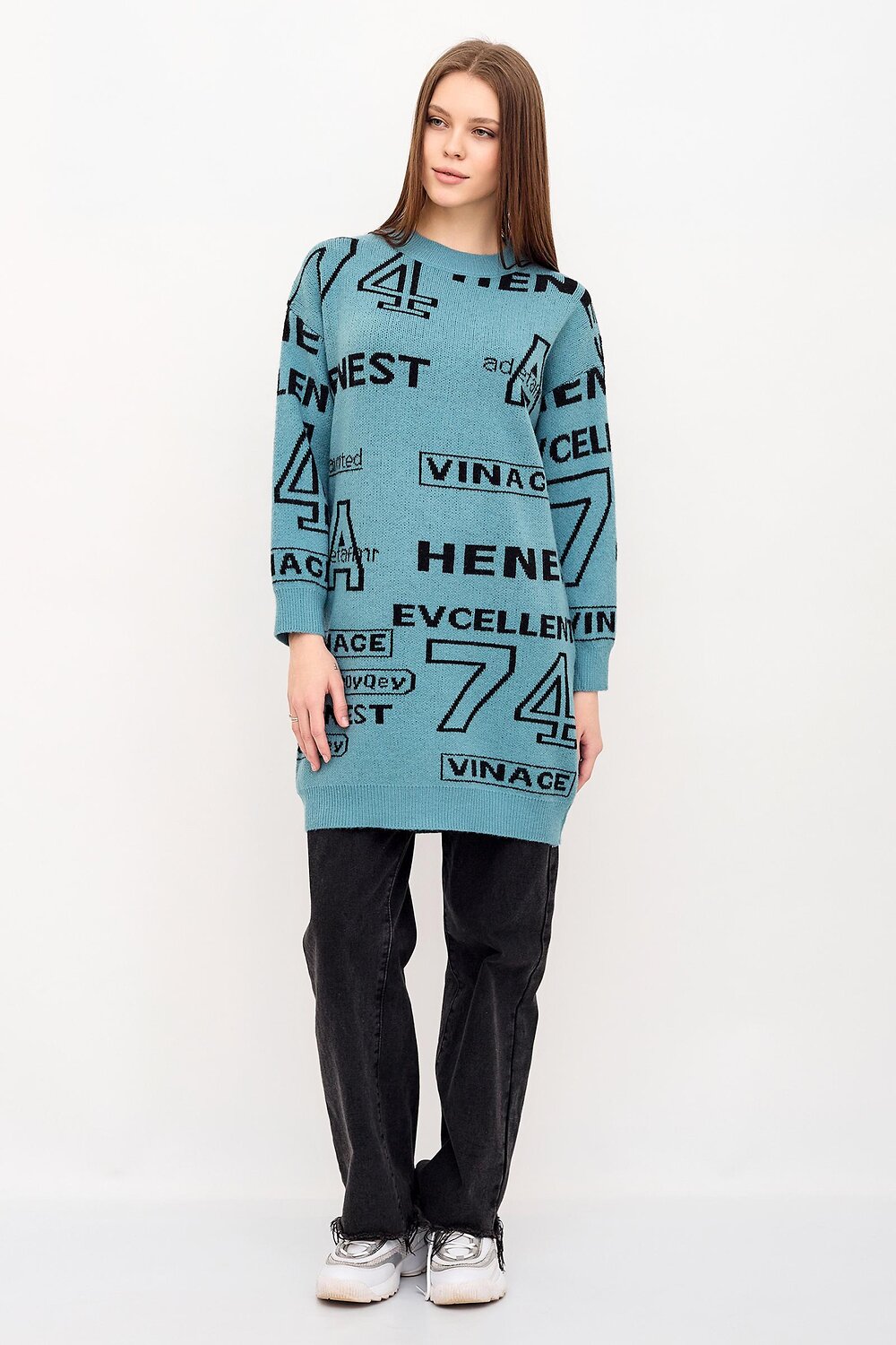 Стильное платье-туника украсит повседневные будни. Утепленная туника с длинными рукавами, выполнена с оригинальным рисунком. Крупный шрифт и цифру украшают модель туники. Длина визуально увеличивает рост и подчеркивает достоинства фигуры, скрывая недостатки. Туника выполнена в различной цветовой гамме, что позволяет выбрать яркие или классические цвета. Идеально сочетается с кожаными легинсами, джинсами и брюками.