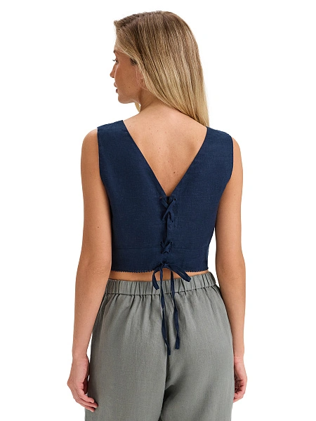 LINEN Топ женский на завязках, цвет темно-синий