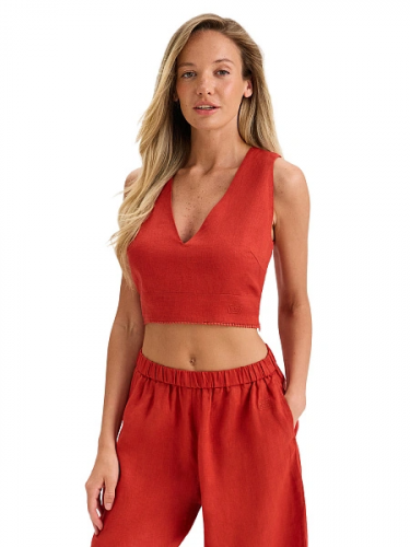 Льняной топ из коллекции LINEN идеально впишется в базовый летний гардероб. Стильный лаконичный дизайн − ничего лишнего! Модель в корсетном стиле с V-образным вырезом горловины и сзади, эффектной шнуровкой на спине, позволяющей регулировать объем, фирменной вышивкой и элегантной тесьмой по низу. Двойной слой материала исключает просвечивание, естественная мятость поддерживает тренд на натуральность. Сбоку имеется застежка-молния, которая открывается снизу вверх и облегчает надевание изделия. Топ с легкостью заменит блузки и майки, с соответствующим низом, например, брюками или удлиненными шортами изо льна, будет уместен и в офисе, и на пляже, органично впишется в домашние и повседневные образы. Представлен в пяти актуальных оттенках: черном, белом, лазурном, темно-синем и терракотовом.