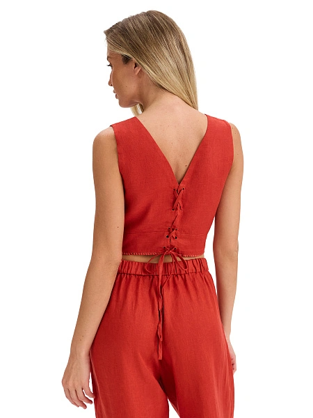 Стильный льняной топ в корсетном стиле на завязках для эффектных летних образов