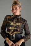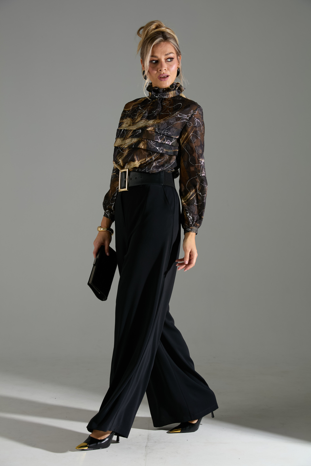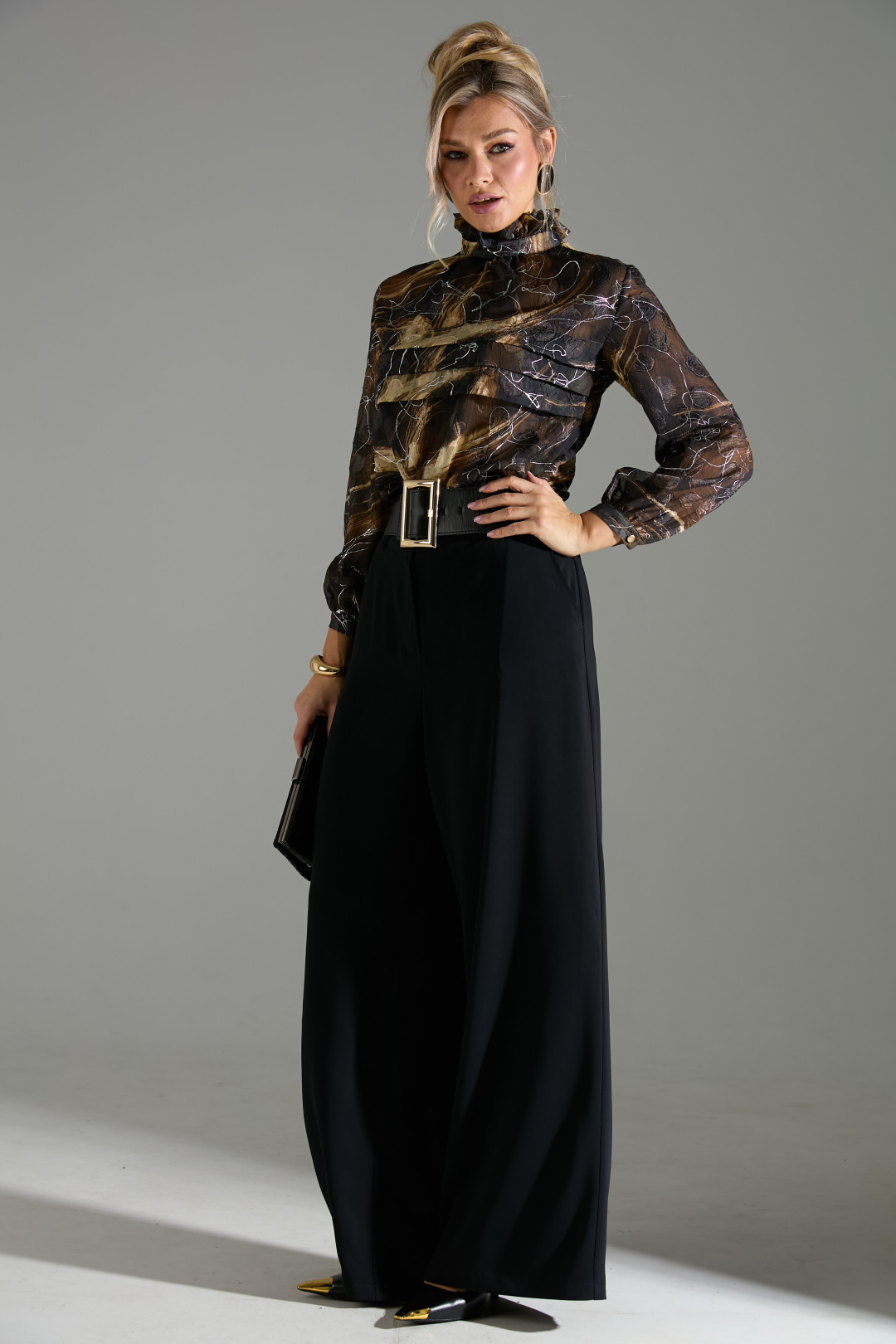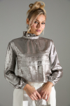 Элегантная блуза из легкой ткани свободного силуэта. По переду блузки добавлен оригинальный элемент в виде складок.