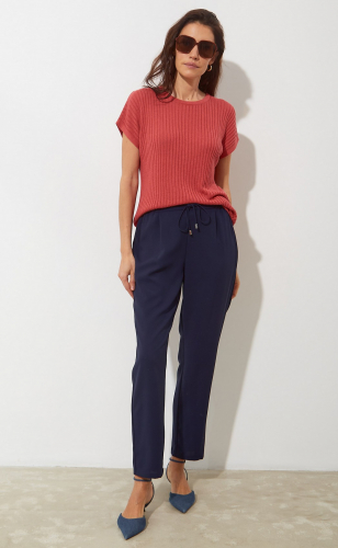 Льняные женские брюки от бренда Fine Joyce синего цвета из ECO COLLECTION. Женские брюки летние классические из льняной ткани, средняя посадка, застежка на молнию и пуговицу, пояс со шлевками под ремень, два боковых кармана с отрезным бочком. Брюки женские укороченные летние с слегка зауженными к низу штанинами длиной до щиколотки с небольшими разрезами для комфорта. Оснащены поясом из аналогичной ткани. Все наши льняные изделия шьются из 100% натурального льна высшего качества и проходят дополнительную энзимную обработку, в результате чего они не подвержены усадке при последующих стирках и не линяют. Брюки женские лен обладают всеми достоинствами натуральных материалов, приятны на ощупь и обеспечивают чрезвычайную воздухопроницаемость и ощущение комфорта в течение дня. Брюки женские свободные на резинке представлены в размерах: S, M, L, XL, XXL. Купить брюки оптом можно напрямую от производителя, после регистрации на сайте. В карточке товара Вы найдете размерные характеристики, которые помогут Вам определиться с размером. Fine Joyce динамично развивающийся российский бренд. Fine Joyce — высокое качество по оптимальной цене!