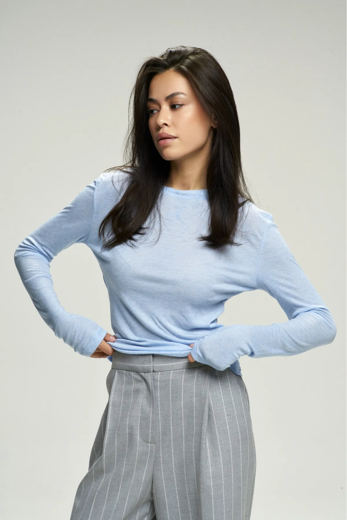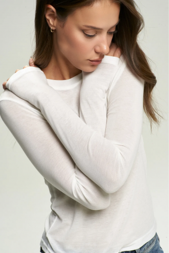 Один «универсальный» размер благодаря продуманному крою по фигуре подходит большинству типажей, подчёркивая силуэт без лишней обтяжки. Правильная линия плеч создаёт аккуратный ровный плечевой контур, а удлинённые рукава придают лонгсливу современный характер и обеспечивают дополнительный комфорт.