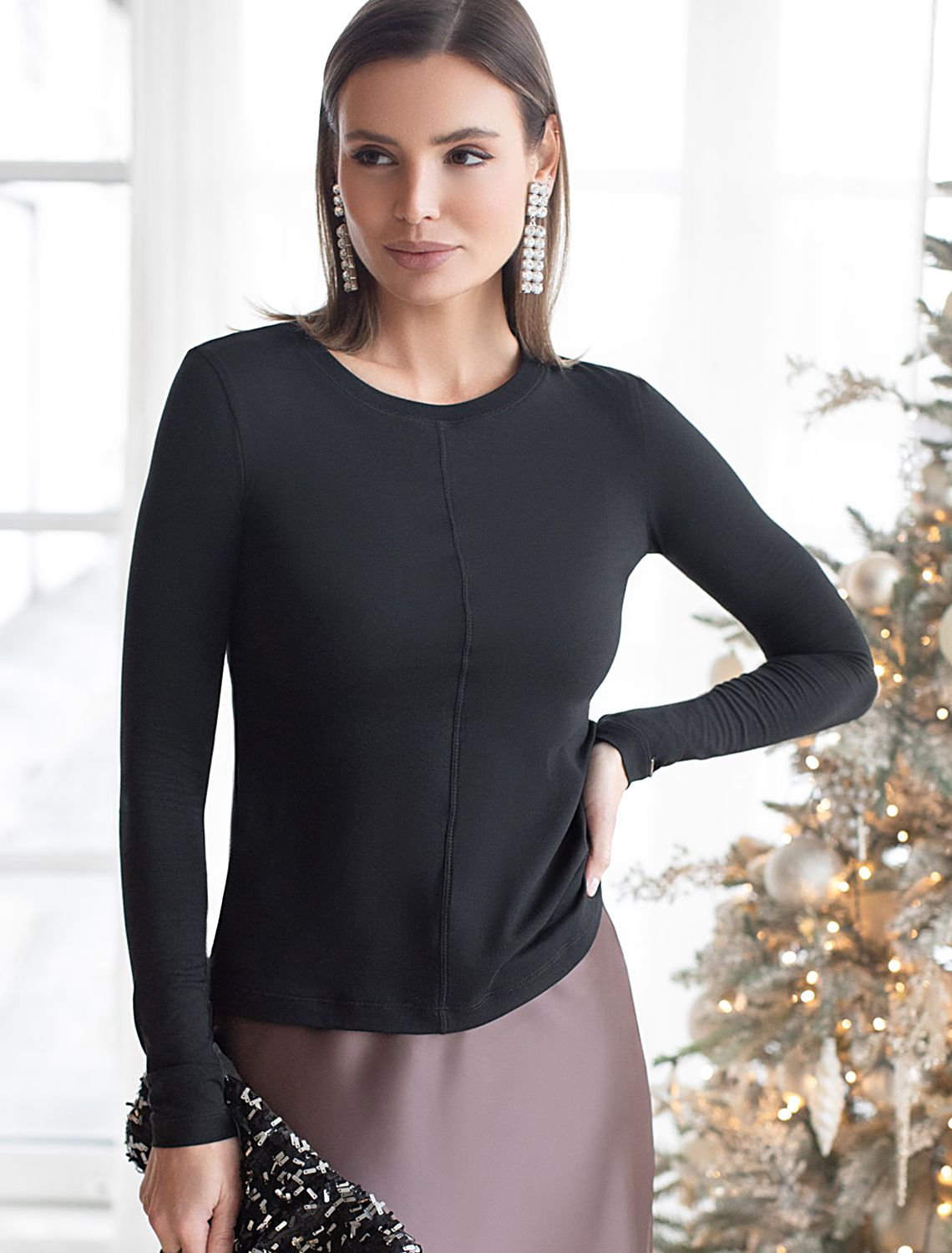 Лонгслив из премиального хлопка с эластаном D49.116 черный