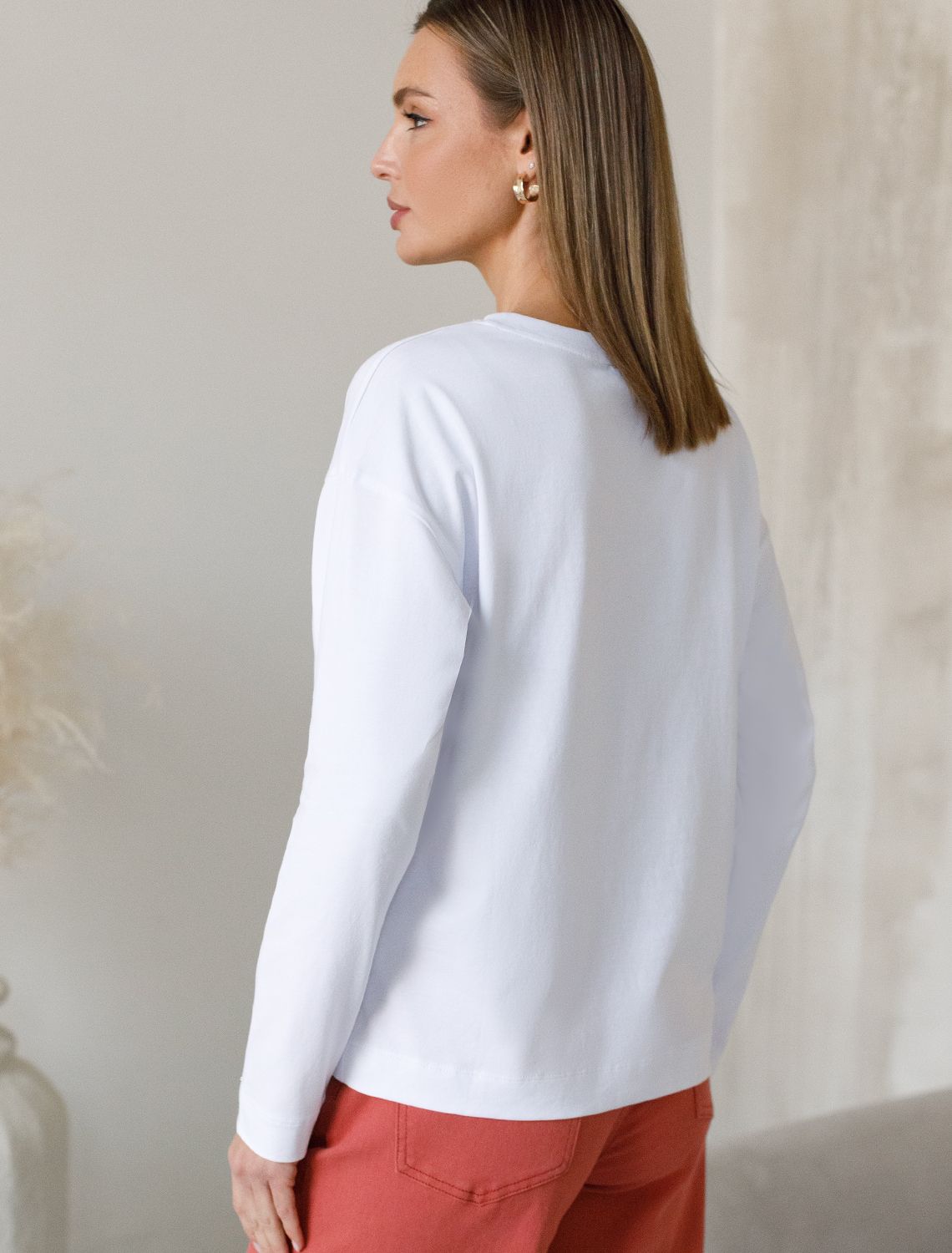 Свободный лонгслив белого цвета с длинным рукавом выполнен из премиального хлопка с добавлением эластана, плотностью 170 Г/м2, что обеспечивает комфорт и приятные тактильные ощущения. Принт в виде цветка, который нанесен красками с устойчивым покрытием, добавляет стиля и индивидуальности, а круглый ворот создает универсальный образ, который подойдет для повседневного использования. Такой лонгслив идеально подходит для весеннего и летнего сезона благодаря легкой и дышащей ткани. Представленная широкая размерная линейка позволяет выбрать оптимальный вариант на любую фигуру, в том числе на плюс-сайз, обеспечивая свободу движений и удобство на каждый день. Этот комфортный лонгслив станет отличной базой в гардеробе, сочетаясь с различными стилями одежды и создавая простой, но эффектный образ.
