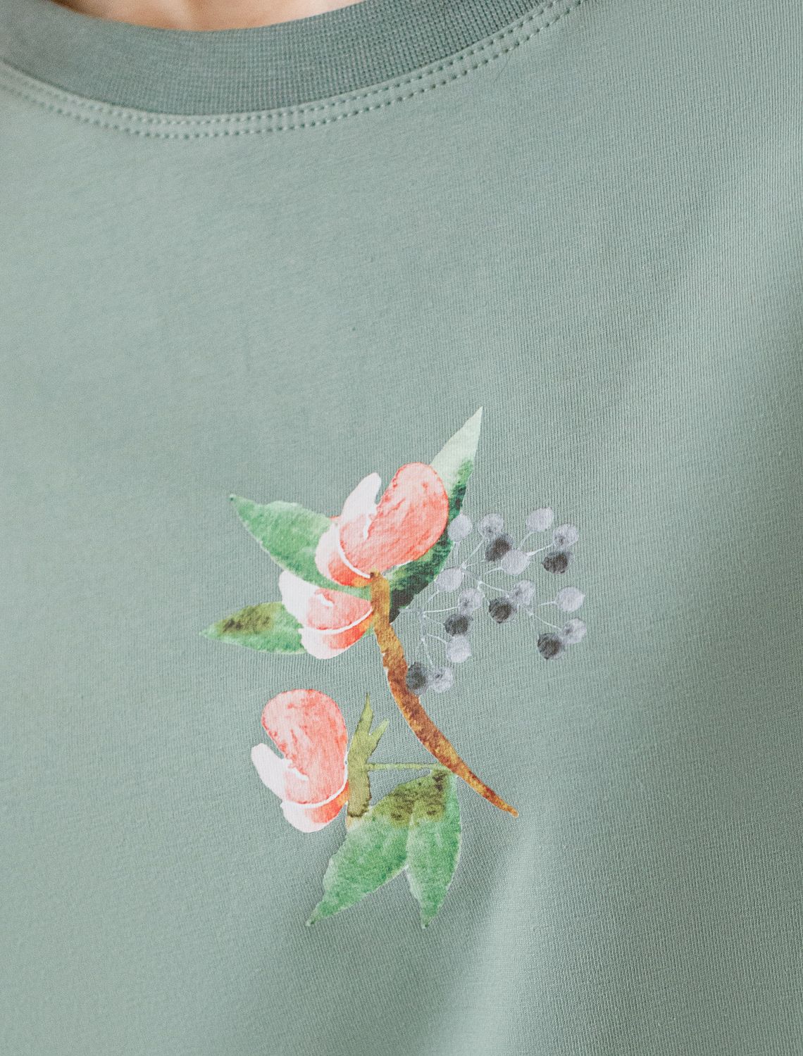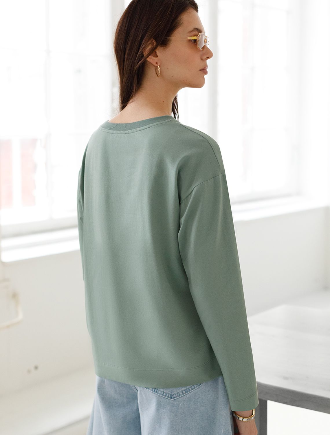 Свободный однотонный лонгслив светло-оливкового цвета с длинным рукавом выполнен из премиального хлопка с добавлением эластана, плотностью 170 Г/м2, что обеспечивает комфорт и приятные тактильные ощущения. Принт в виде цветка - добавляет стиля и индивидуальности, а круглый ворот создает универсальный образ, который подойдет для повседневного использования. Такой лонгслив идеально подходит для весеннего и летнего сезона благодаря легкой и дышащей ткани. Представленная широкая размерная линейка позволяет выбрать оптимальный вариант на любую фигуру, в том числе на плюс-сайз, обеспечивая свободу движений и удобство на каждый день. Этот комфортный лонгслив станет отличной базой в гардеробе, сочетаясь с различными стилями одежды и создавая простой, но эффектный образ.