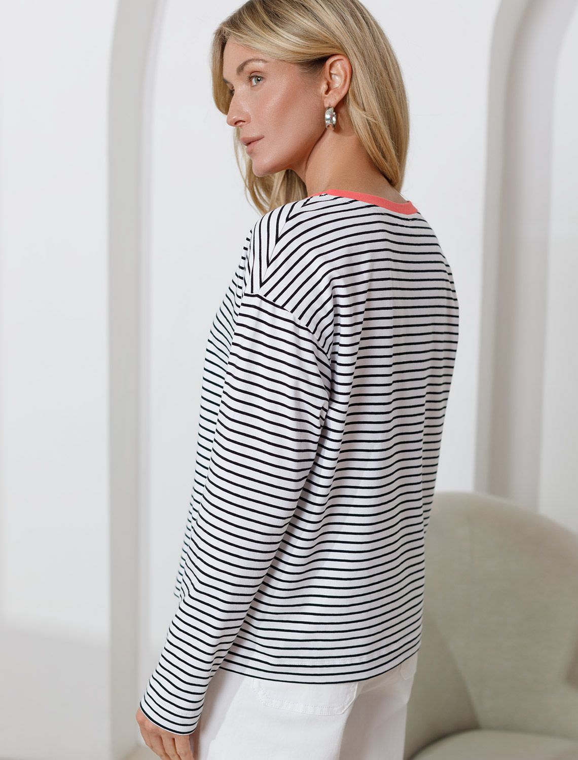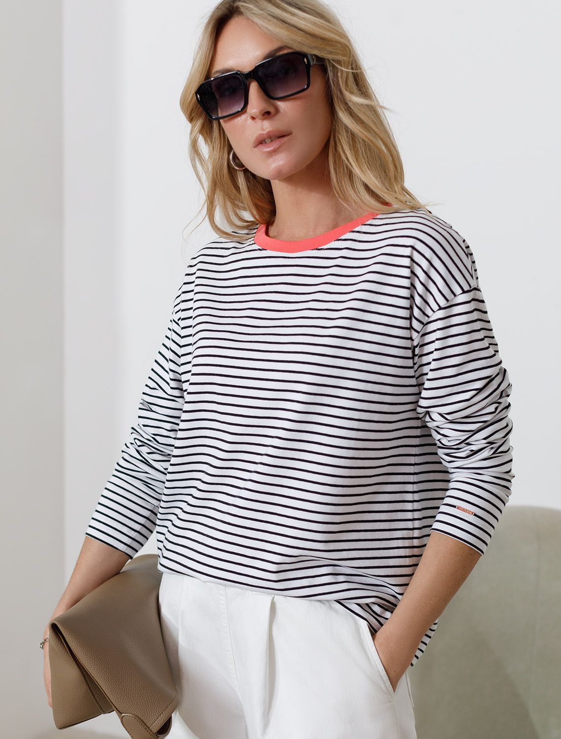 Свободный лонгслив тонкую черно-белую полоску с длинным рукавом выполнен из премиального хлопка с добавлением эластана, плотностью 170 Г/м2, что обеспечивает комфорт и приятные тактильные ощущения. Полоска - придает изделию легкую текстурность и стильный вид, а круглый ворот создает универсальный образ, который подойдет для повседневного использования. Такой лонгслив идеально подходит для весеннего и летнего сезона благодаря легкой и дышащей ткани. Представленная широкая размерная линейка позволяет выбрать оптимальный вариант на любую фигуру, в том числе на плюс-сайз, обеспечивая свободу движений и удобство на каждый день. Этот комфортный лонгслив станет отличной базой в гардеробе, сочетаясь с различными стилями одежды и создавая простой, но эффектный образ.