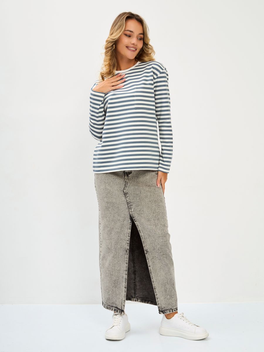 Женский лонгслив из футера 2-х нитка петля, с втачным рукавом. На полочке нагрудный накладной карман. Горловина обработана бейкой из кашкорсе. Низ лонгслива и низ рукава подвернуты и подшиты.