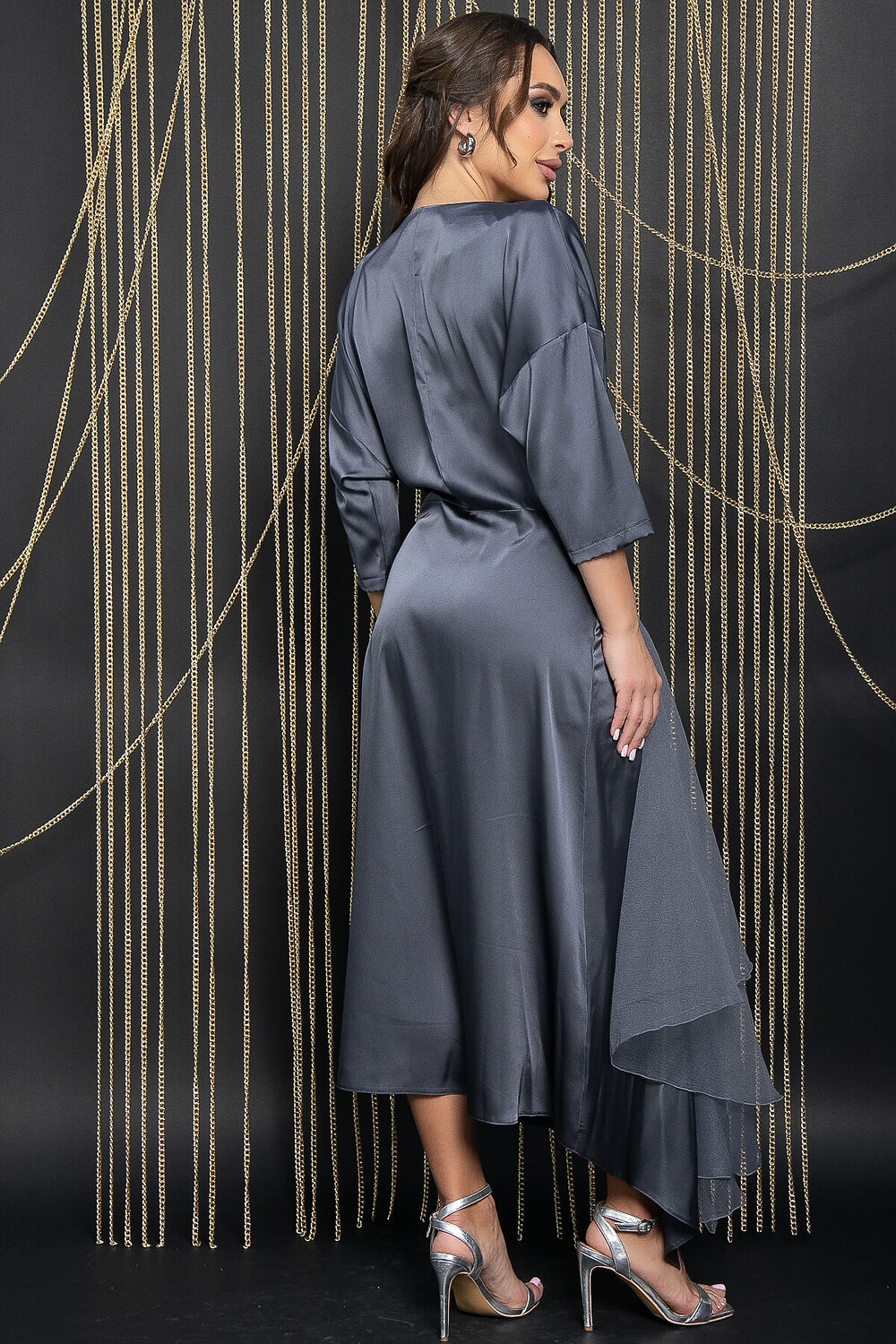 Изысканное платье в макси-длине – идеальный выбор для любого торжества. Платье с рукавом-регланом, выполненное из качественного атласа, мягко облегает фигуру, подчеркивая её достоинства. Акцентной деталью является юбка, которая декорирована хвостом из органзы, что придает ему особую воздушность и шарм. Платье отрезное по талии.