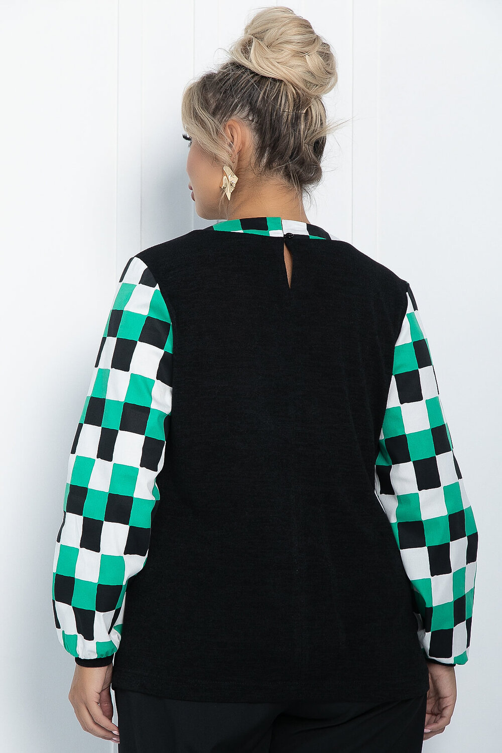 Принт: клетка на рукавах.