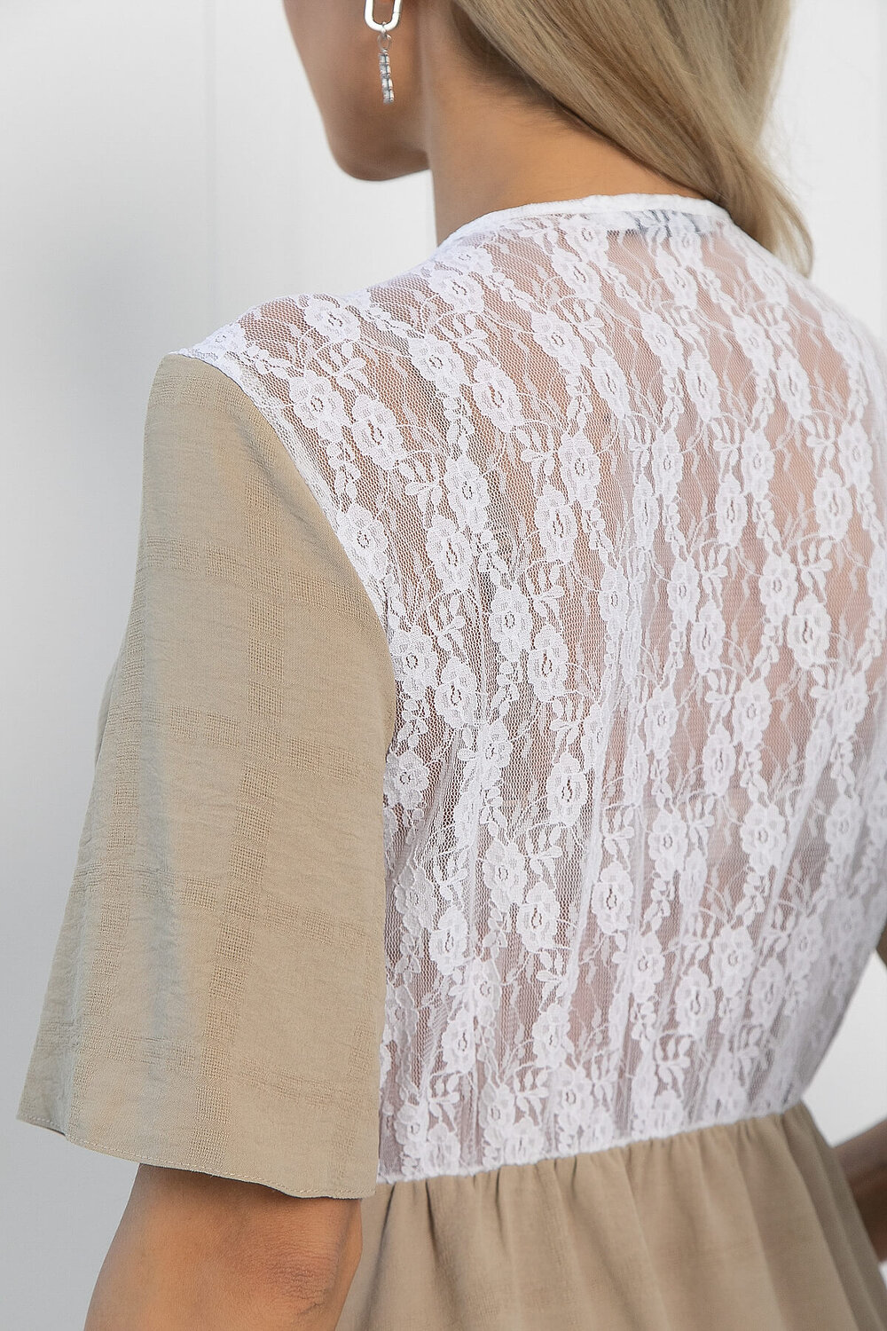 Маленькое изящное платье с полупрозрачной спинкой для создания женственного образа на лето. Благодаря резинке по линии талии платье идеально садиться на фигуру и подчёркивает все её достоинства. Рукав втачной, укороченный. По низу юбки - волан.