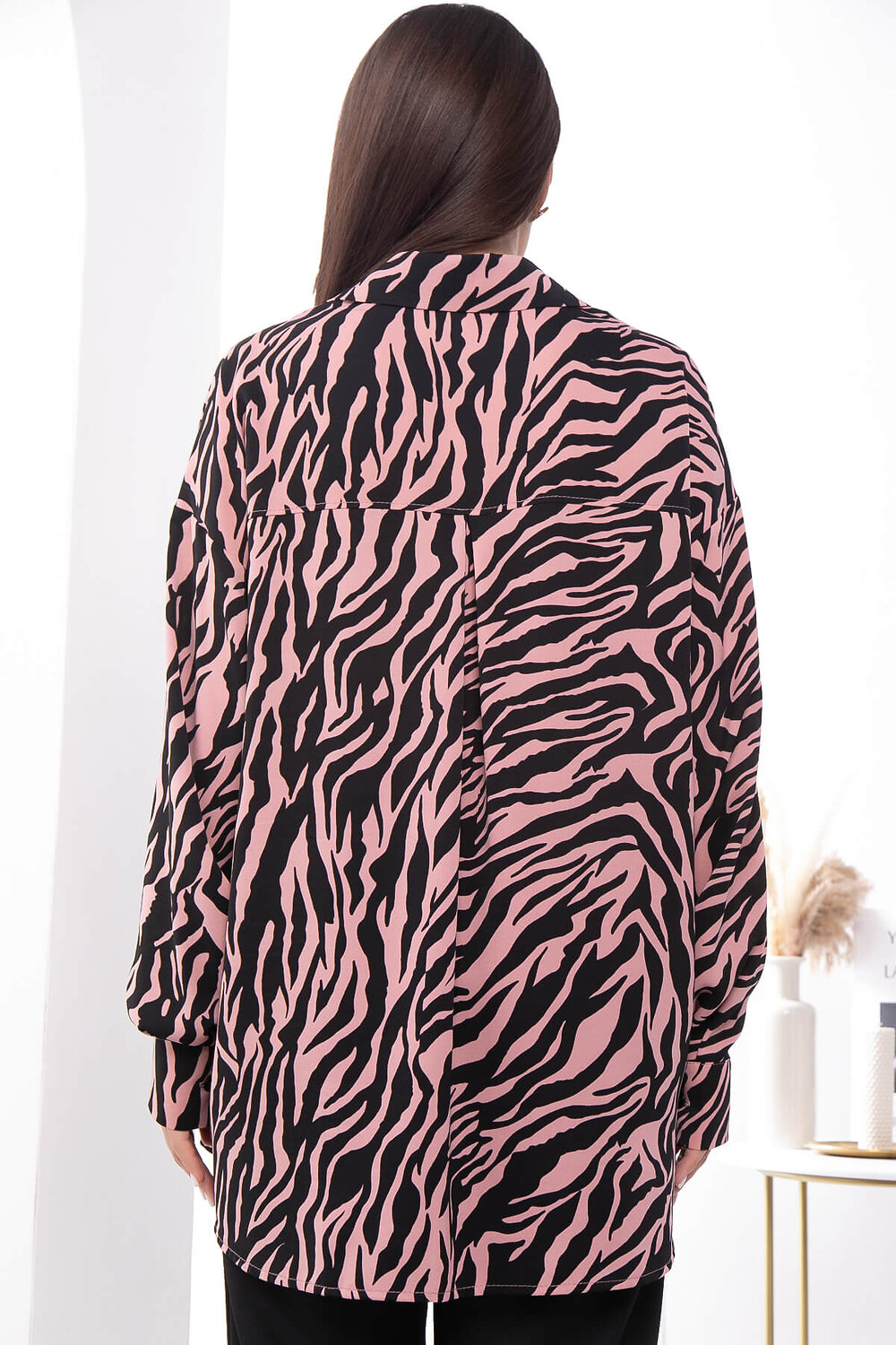 Блуза в стильной расцветке придаст яркости и эффектности вашему образу. Крой блузы обеспечивает максимально свободную посадку, что позволит скорректировать фигуру. С такой моделью можно создать и официально-деловой образ, и расслабленный. Блуза имеет длинный рукав со спущенным плечевым швом.