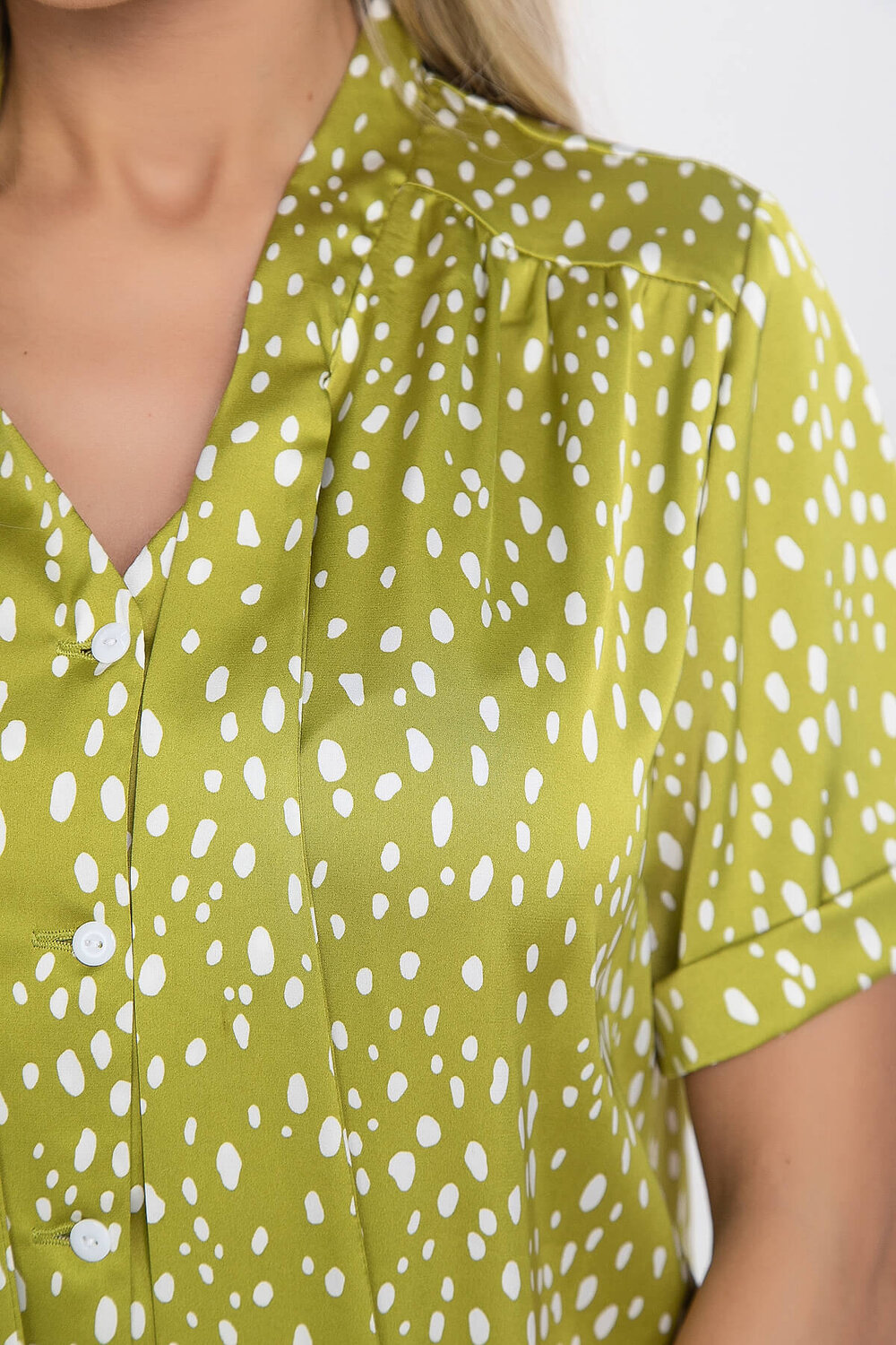 Классическая блуза выполнена из приятной к телу ткани. Такая модель блузы хорошо будет сочетаться с Вашим деловым гардеробом. Рукав втачной, короткий, с подгибкой. По передней части горловины ворот украшен бантом. При помощи такой блузы Вы с лёгкостью сможете украсить свой офисный образ.