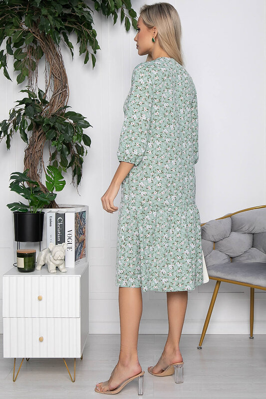 Женственное платье длины миди, которое прекрасно подойдет для прогулки или свидания! Хорошо сочетается с каблучком и обувью на низком ходу. Рукава втачные 3/4 на резинке, в боковых швах карманы. По низу волан.