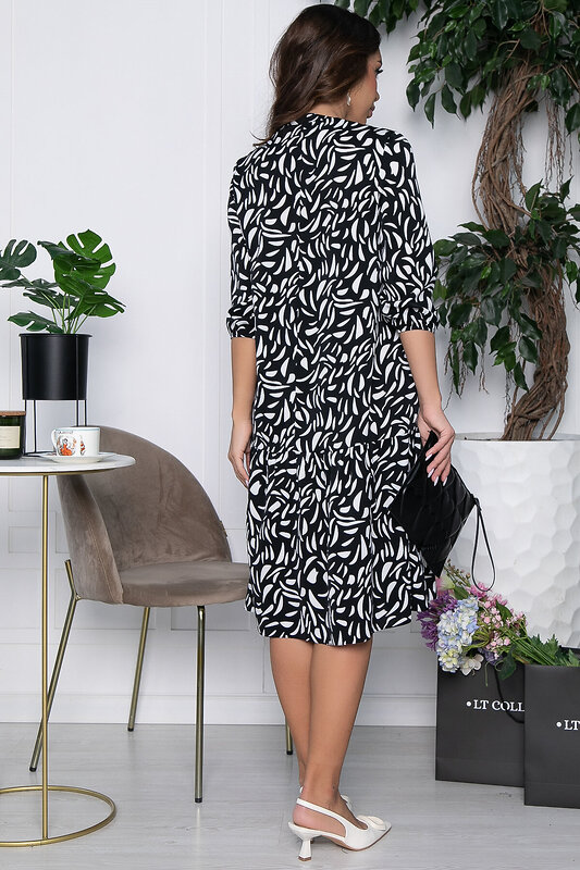 Женственное платье длины миди, которое прекрасно подойдет для прогулки или свидания! Хорошо сочетается с каблучком и обувью на низком ходу. Рукава втачные 3/4 на резинке, в боковых швах карманы. По низу волан.