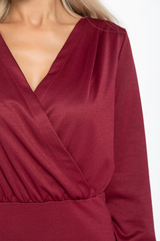 Красивая женщина должна носить красивые наряды. К ним относится это платье - верх на запах, которое восхитительно подчеркивает женственность и изящность форм, юбка облегающая с резинкой на талии сохраняет строгость и лаконичность образа. Платье дополняется поясом из основной ткани, который идет в комплекте.