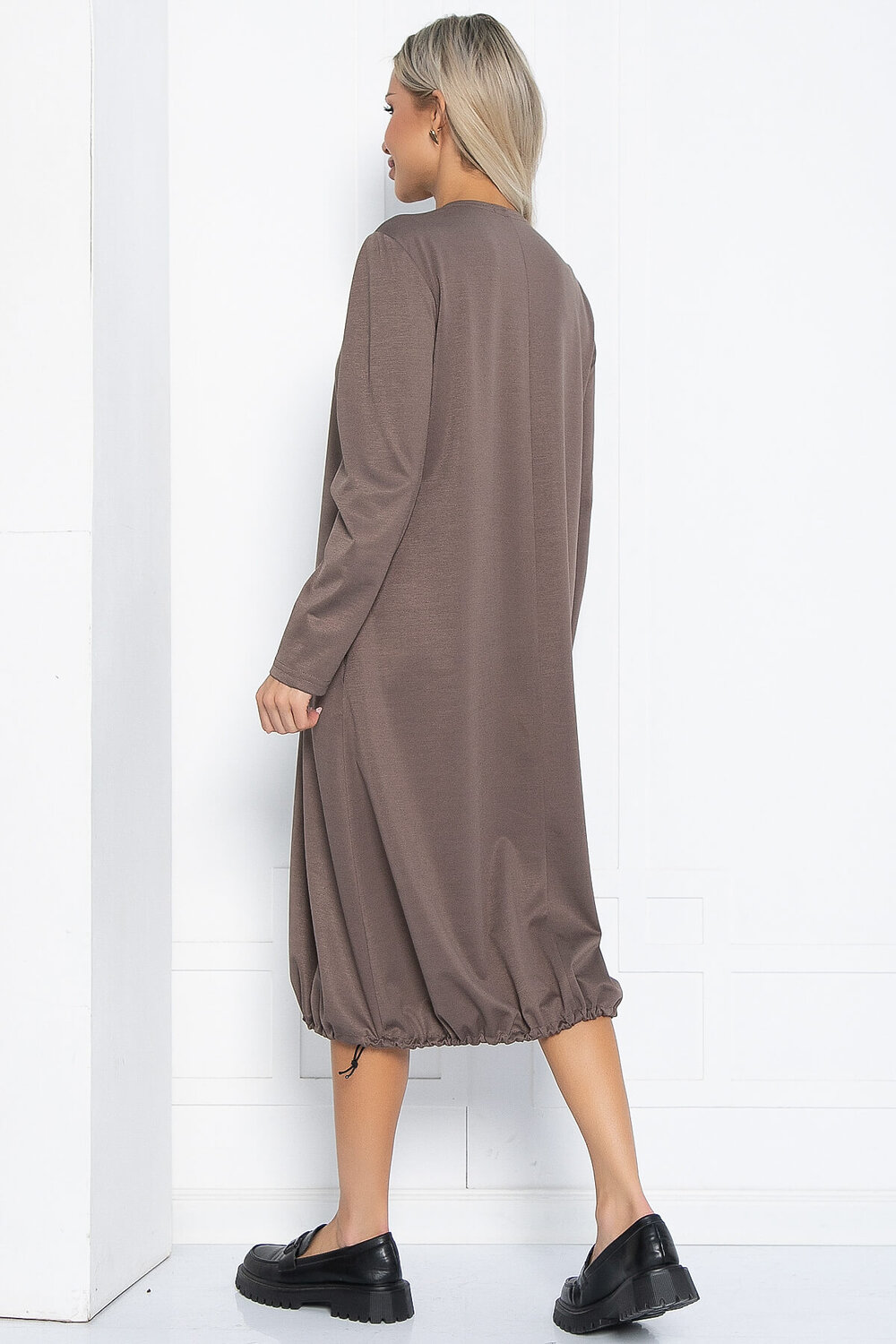 Невероятное платье с карманами в стиле спорт-шик сочетает в себе удивительным образом элегантность и комфорт. Модное решение из приятного, слегка глянцевого трикотажа в актуальных модных оттенках. Изделие свободного кроя с длинным рукавом и регулируемой кулиской по низу не оставит равнодушной ни одну модницу. Данная модель позволяет надеть как обувь на высоком каблуке, так и трендовые модели на платформе. В таком платье вы будете чувствовать себя свободно, нарядно и модно одновременно.