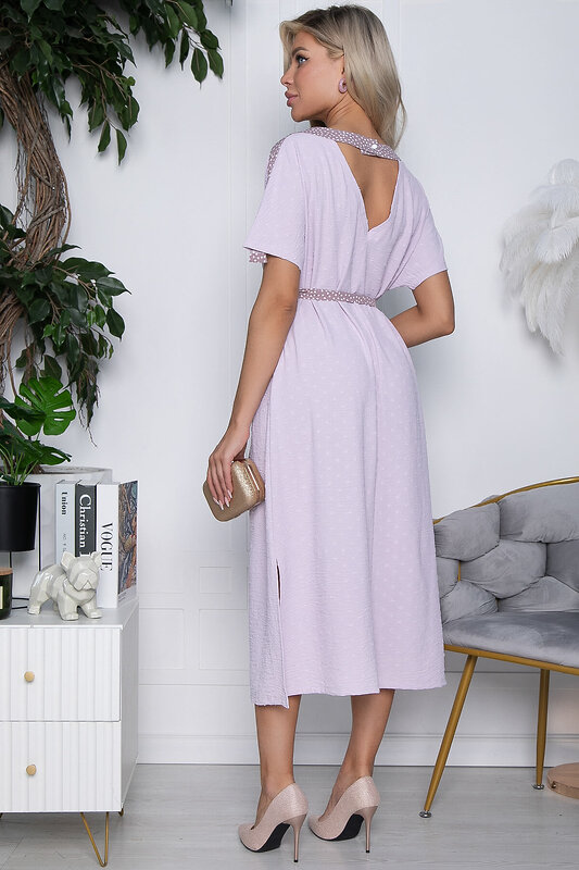 Элегантное платье прямого силуэта состоящее из 2-х видов ткани. Потрясающее платье несомненно подчеркнет Вашу женственность, а его интересный крой расставит грамотные акценты в Вашем образе. Горловина округлая. Деликатный V-образный вырез на груди и спинке. Рукав спущенный. Пояс в комплекте. Платье без подклада.