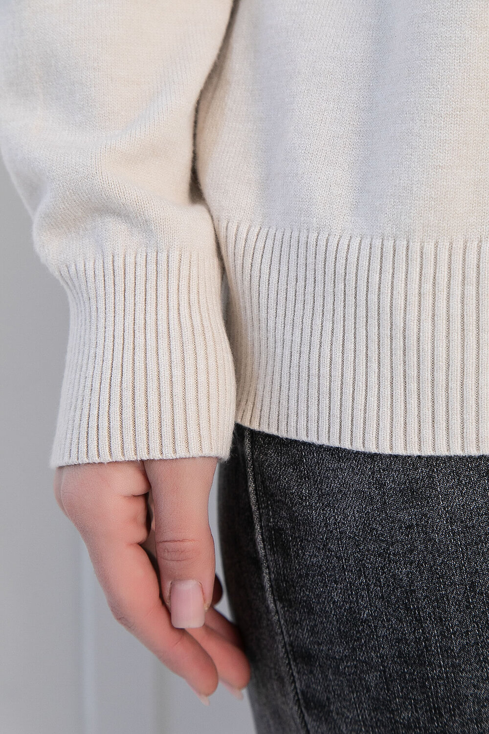 Нежный вязаный свитер для уютных и тёплых образов в прохладное время года. Гармоничное сочетание видов вязки дополнено изящными фактурными полосами в тон, делает теплую кофту универсальной моделью как для повседневной носки, так и для особых случаев. Выполнен с воротником-хомутом и рукавом-регланом, имеет умеренно-свободный силуэт и комфортную посадку по фигуре, благодаря которым в нем будет комфортно и беременным. Одинаково хорошо сочетается с брюками прямого кроя ярких и приглушенных расцветок, джинсами и кожаными брюками светлых оттенков.