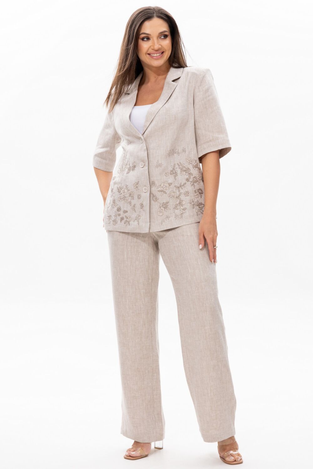 Брюки будут идеально смотреться с нашим жакетом 1076 или рубашкой 1079 (на фото), также брюки  можно купить в составе костюма 3046. Составят незаменимую часть вашего базового весенне-летнего гардероба.