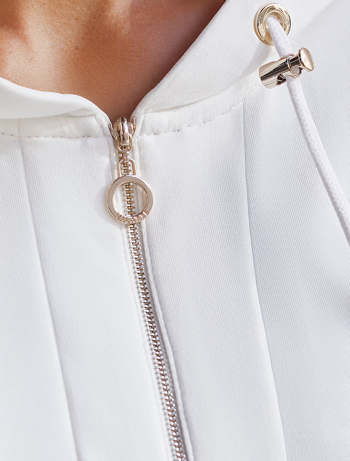 Парка с золотистой фурнитурой из тонкого эластичного футера D49.076 белый