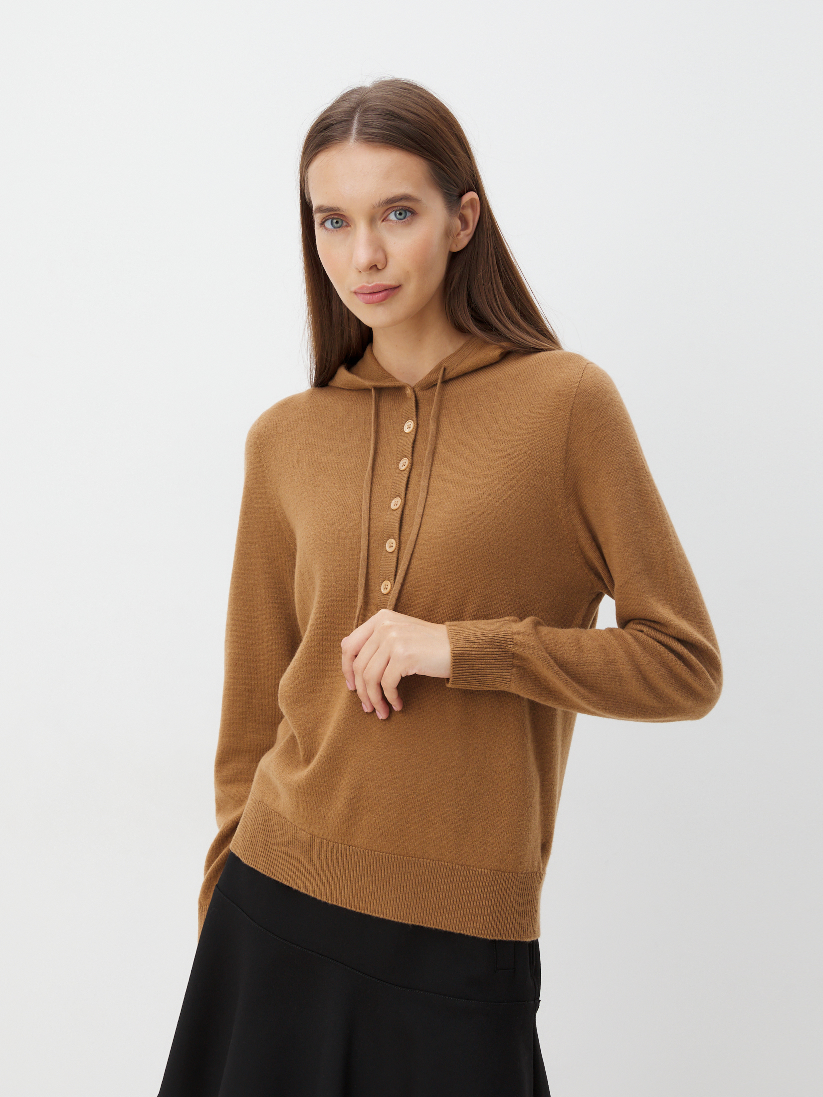 Модель создана из 100% шерсти мериноса – натурального материала, который получают от особой породы тонкорунных овец. Шерсть мериноса ценится за нежность, мягкость и эластичность. Натуральная шерсть пропускает воздух, не создавая парникового эффекта, поэтому ваша кожа останется сухой. В шерстяных вещах тепло, но не жарко. У волокон мериноса есть завитки, похожие на пружинки. Грязь не проникает в них, а остается снаружи, благодаря чему шерстяные вещи долго остаются свежими.