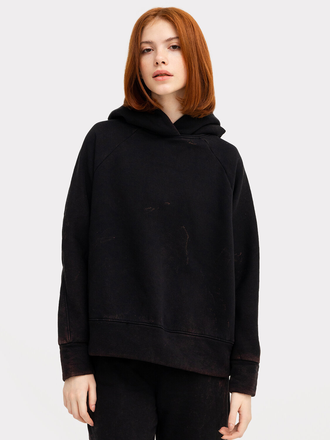 Базовое худи женское свободного силуэта из высококачественного хлопка. Материал изделия - нежный футер с подчесом. Вырез круглой формы, с уютным капюшоном. Рукава типа реглан, с широкими манжетами. Изюминкой худи является горизонтальный шов-членение на спинке и широкий свободный в нижней части. Худи женское с капюшоном имеет расслабленный силуэт. Если вам нужен базовый и универсальный вариант, который можно комбинировать со множеством вещей, тогда эта модель для вас. Стильное и удобное, в линейке широкий размерный ряд, такое худи женское подойдет на женскую фигуру любого типа. В линейке много разных расцветок, есть спокойные и яркие цвета, а также модели с интересными принтами. Отличное худи женское свободное для спортивных занятий, домашнего отдыха и прогулок. Купить худи женское недорого можно у нас на сайте или магазине Mark Formelle. Рекомендуем!