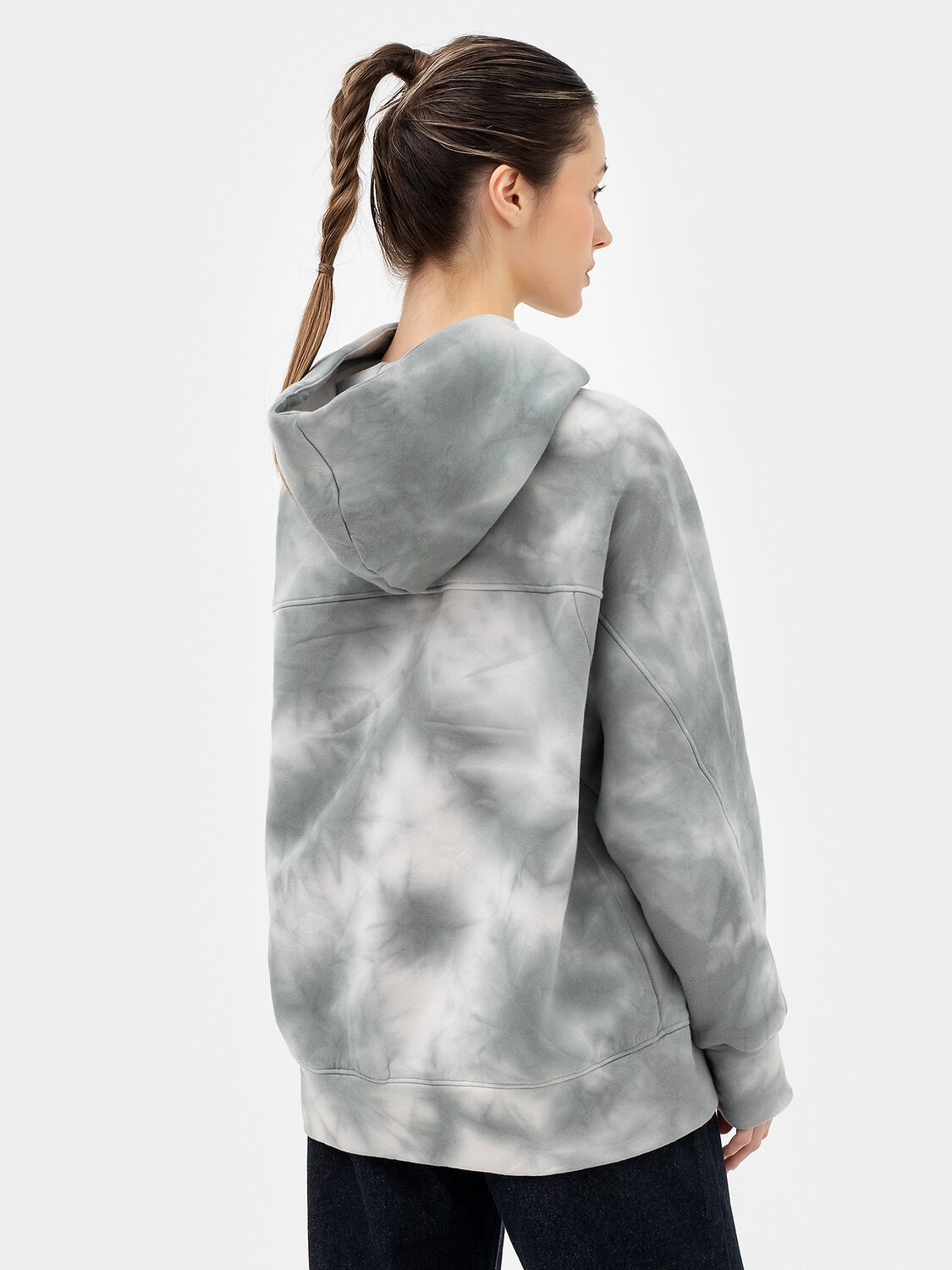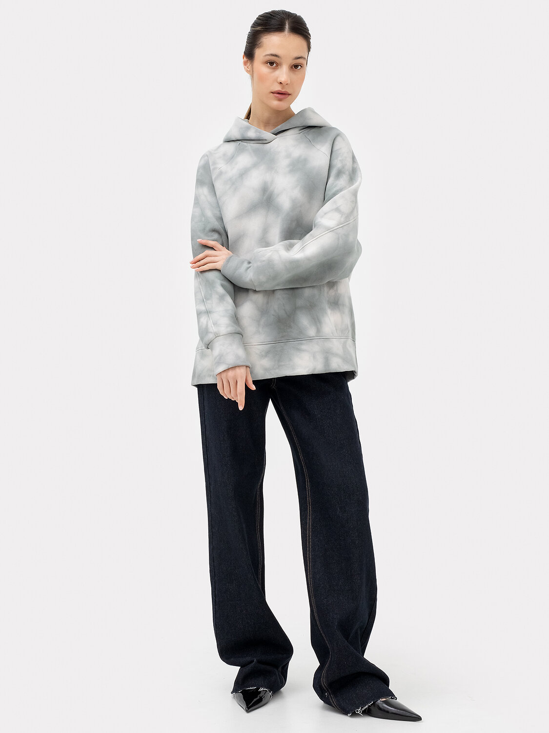 Женское худи свободного силуэта из трикотажного футера с теплым подчесом. Вырез круглой формы, с уютным капюшоном. Рукава типа реглан, с широкими манжетами. Изюминкой худи является горизонтальный шов-членение на спинке и широкий свободный в нижней части. Рекомендуем!