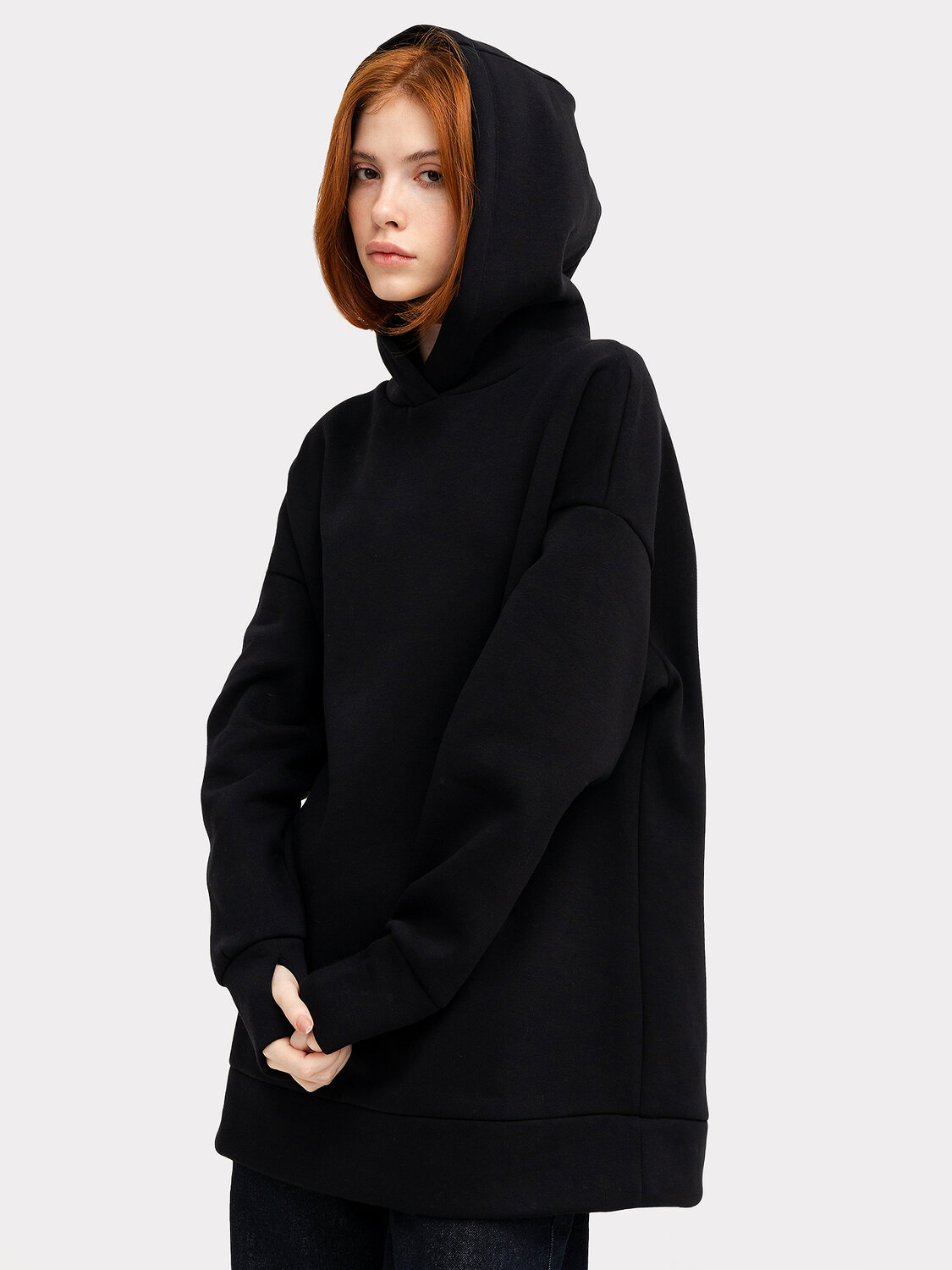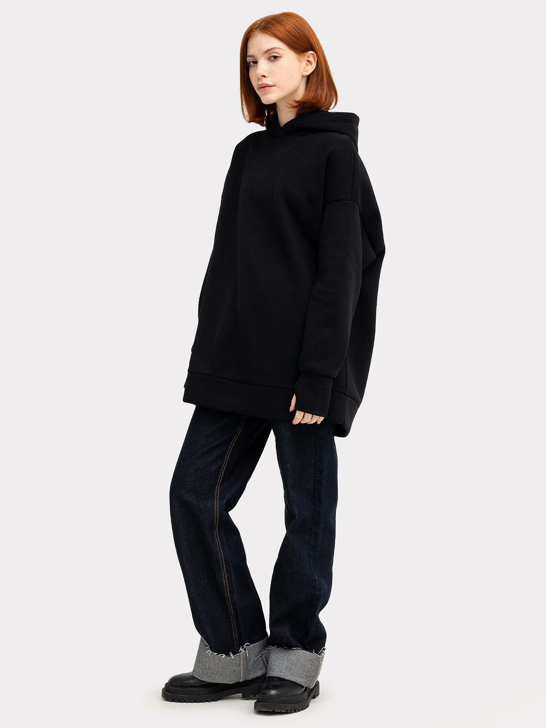 Анорак изготовлен из трикотажного полотна футер. Анорак свободного силуэта (оверсайз), длиной ниже линии бедер.