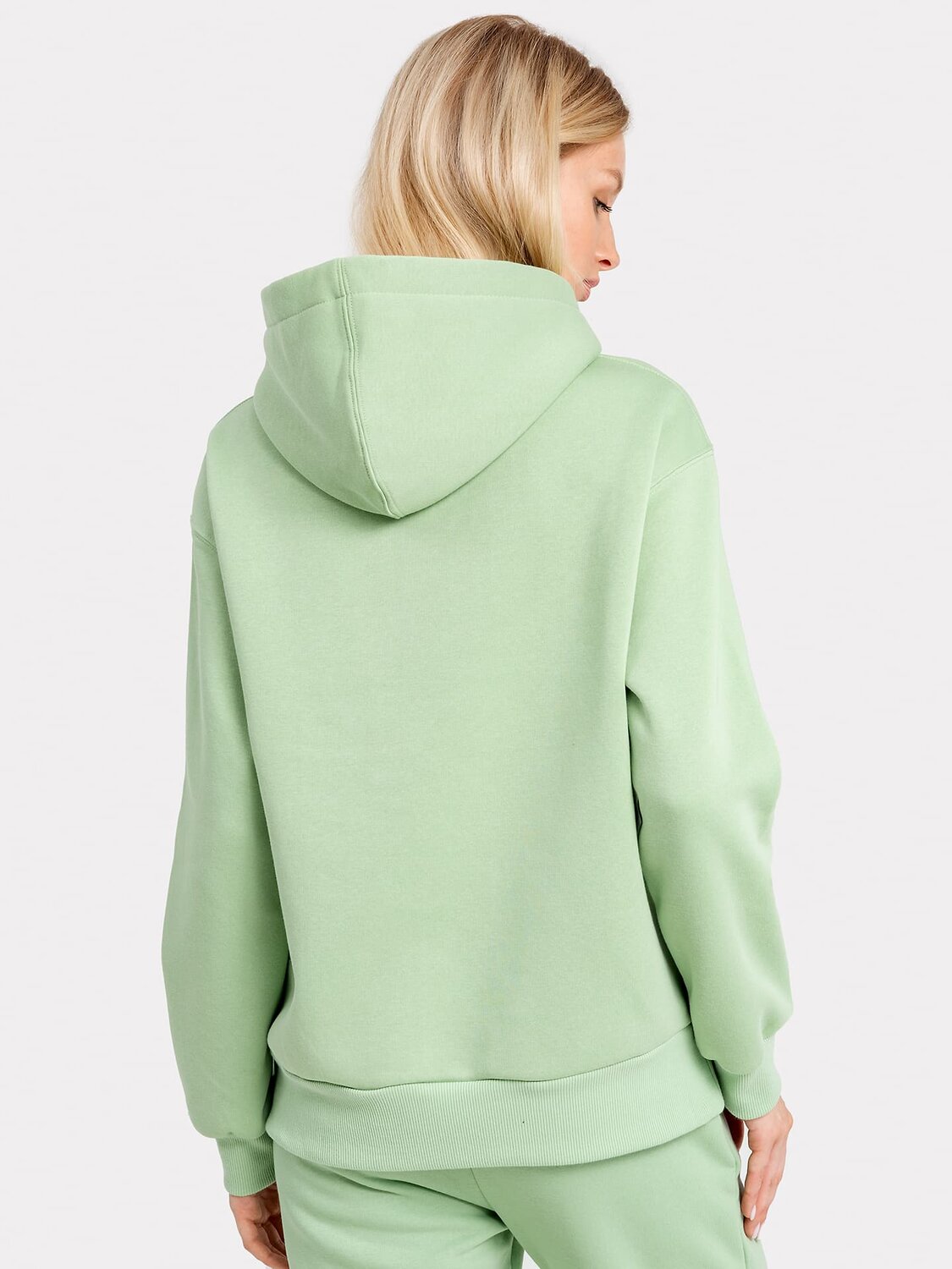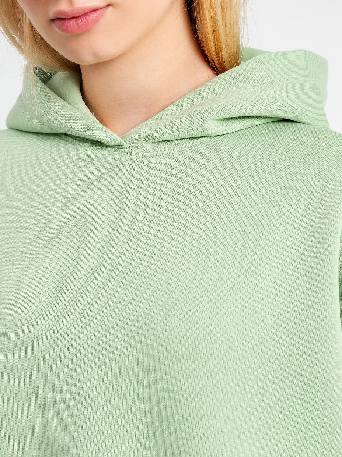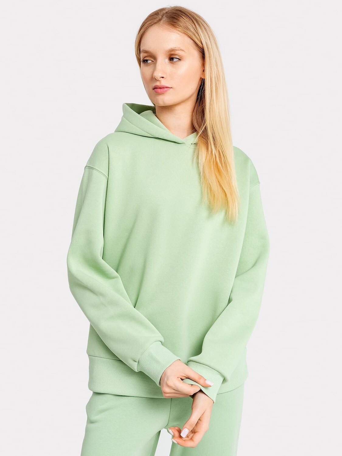 Анорак женскй изготовлен из трикотажного полотна футер. Анорак свободного силуэта. Горловина округлой формы, в горловину втачан капюшон. Капюшон с центральным швом. Плечо спущено, пройма углублена. Рукав втачной, длинный. По низу рукава широкая отрезная манжета из рибаны. По низу жакета широкий отрезной пояс из рибаны.