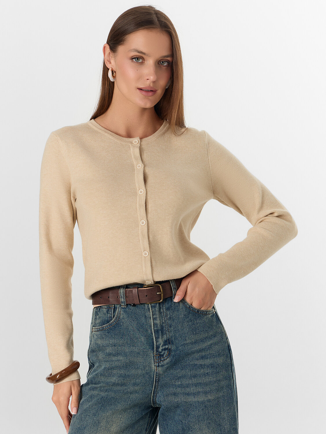 Кардиган на пуговицах — идеальный способ добавить уют и элегантность в повседневный образ. Модель с круглым вырезом и классической застежкой на пуговицах легко сочетается с любой базой. Мягкая смесь вискозы и нейлона обеспечивает комфорт: материал приятен к телу, хорошо сохраняет тепло и при этом отличается легкостью, сохраняя форму после стирок.