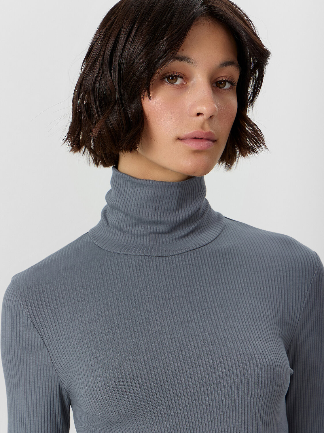 Женский джемпер с длинными рукавами и воротником-стойкой. Изделие выполнено из рибаны - материала, который отличается высокой эластичностью и мягкостью. Этот джемпер обеспечит комфорт и подчеркнет вашу фигуру. Однотонная расцветка делает его базовым и универсальным элементом вашего гардероба. Он легко сочетается с различными стилями и образами, добавляя нотку элегантности и утонченности в ваш повседневный стиль.