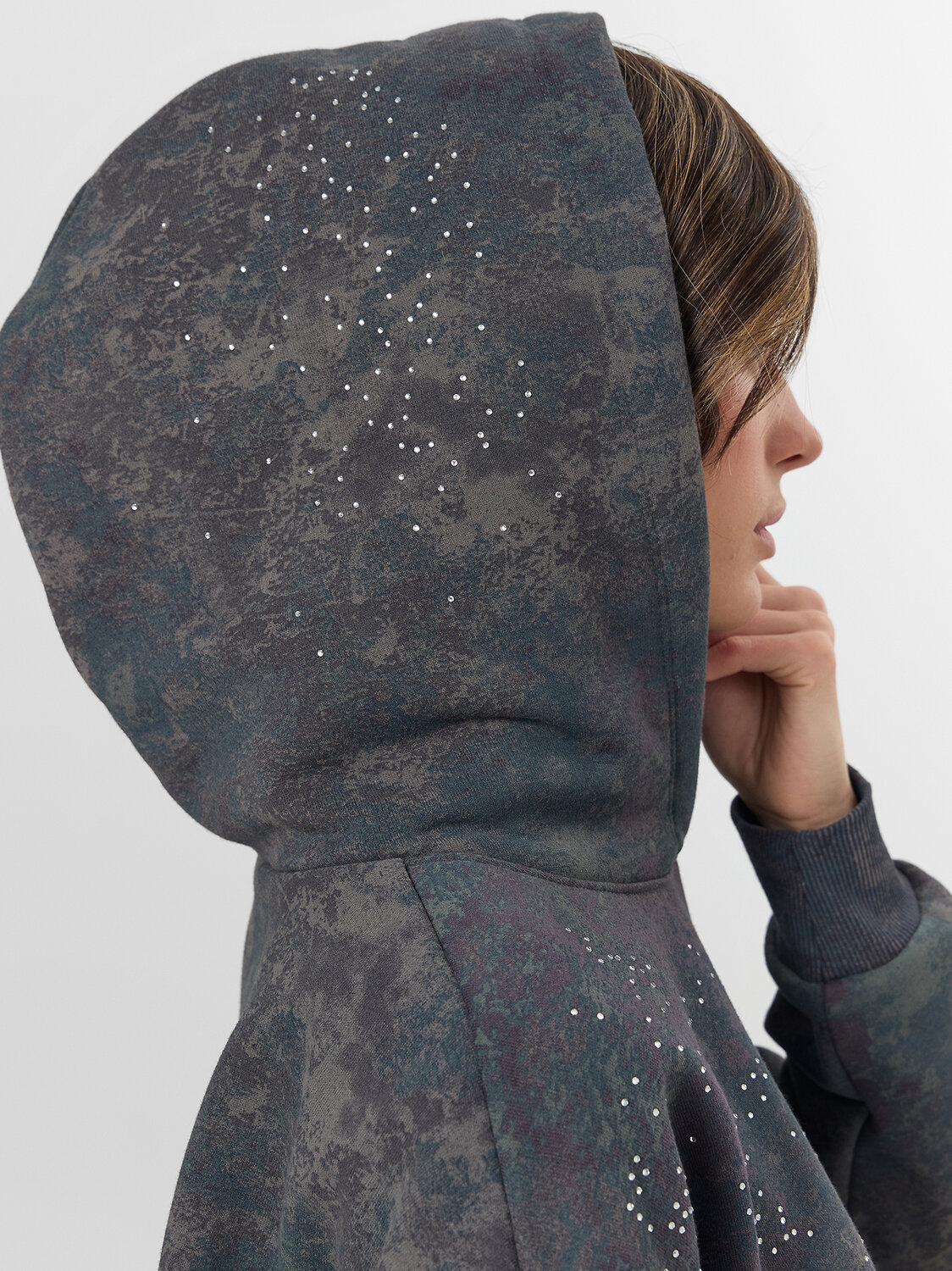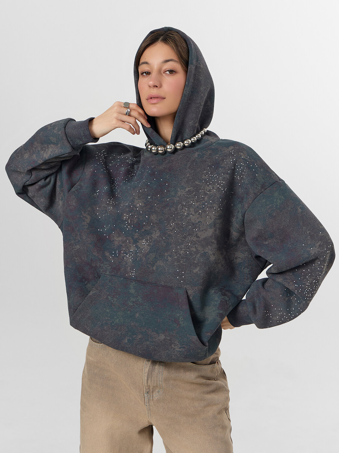 Женское худи с эффектом потертости на металле— идеальный спутник для уютных городских образов. Свободный оверсайз крой и спущенная линия плеча окутают вас комфортом, а мягкий футер с начесом согреет в прохладный день. Просторный капюшон и вместительный карман-кенгуру делают модель практичной для повседневного использования.