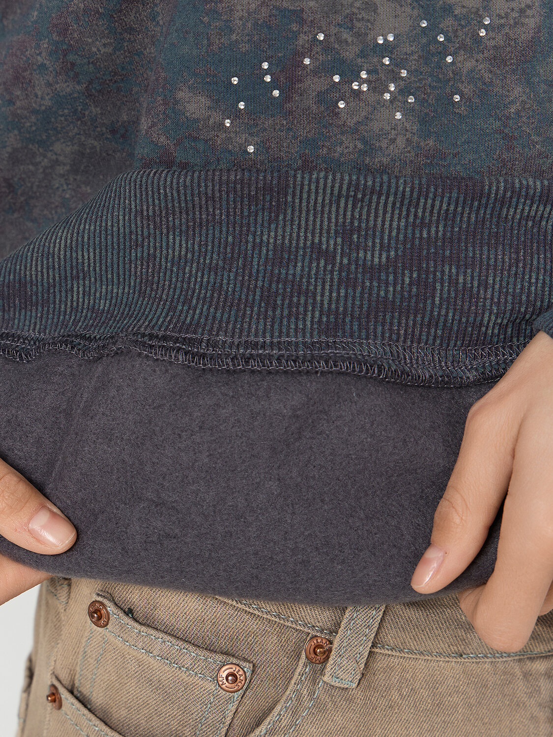 Плотная ткань с начесом внутри обеспечивает дополнительное тепло, а эластичные манжеты из рибаны сохраняют форму после активной носки. Удобный капюшон создает ощущение защищенности, а глубокий карман-кенгуру вместит все необходимое. Винтажные потертости придают худи характерный винтажный шарм и индивидуальность.