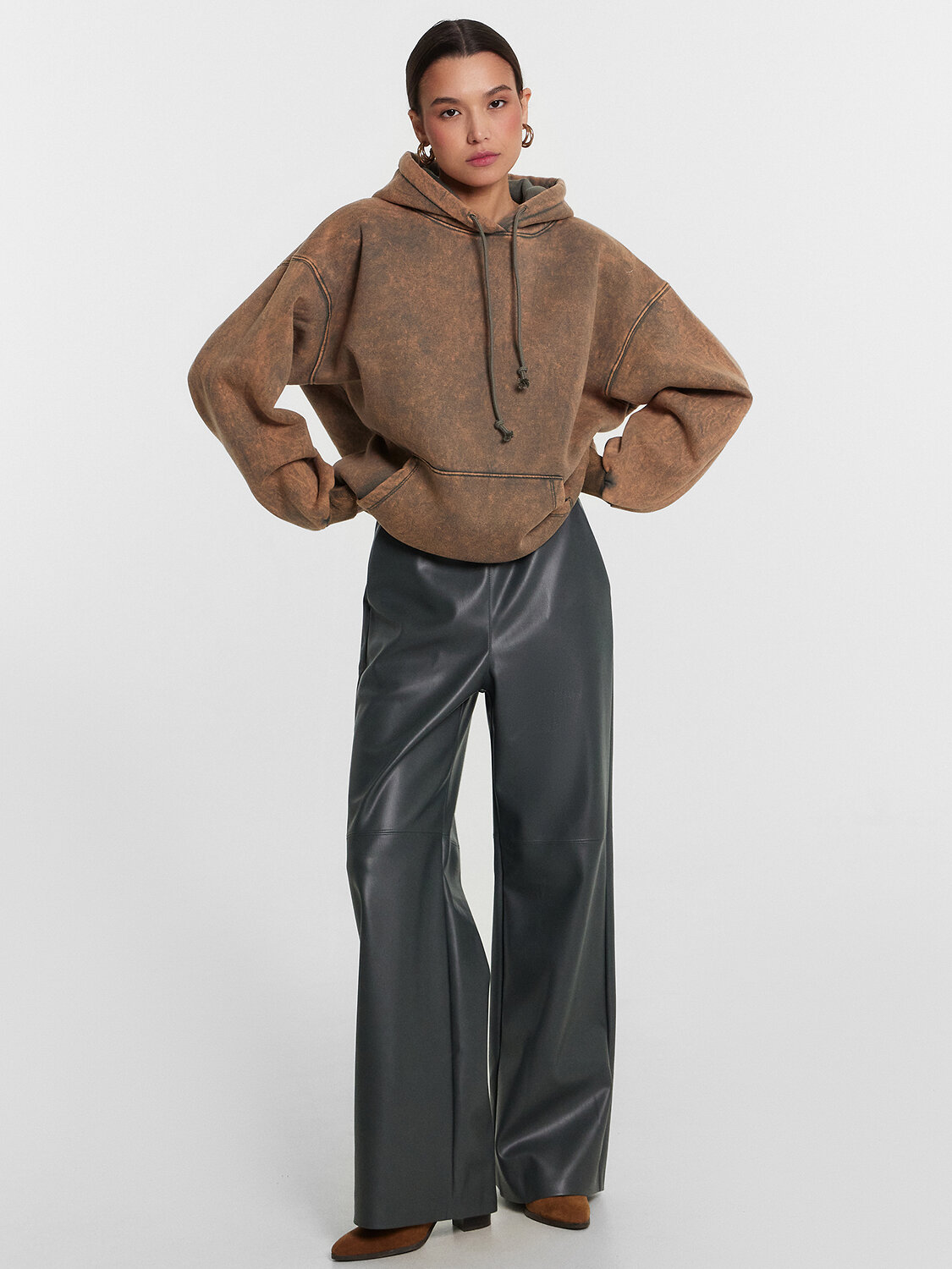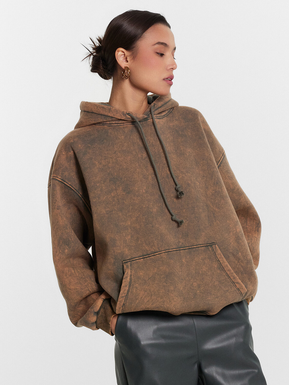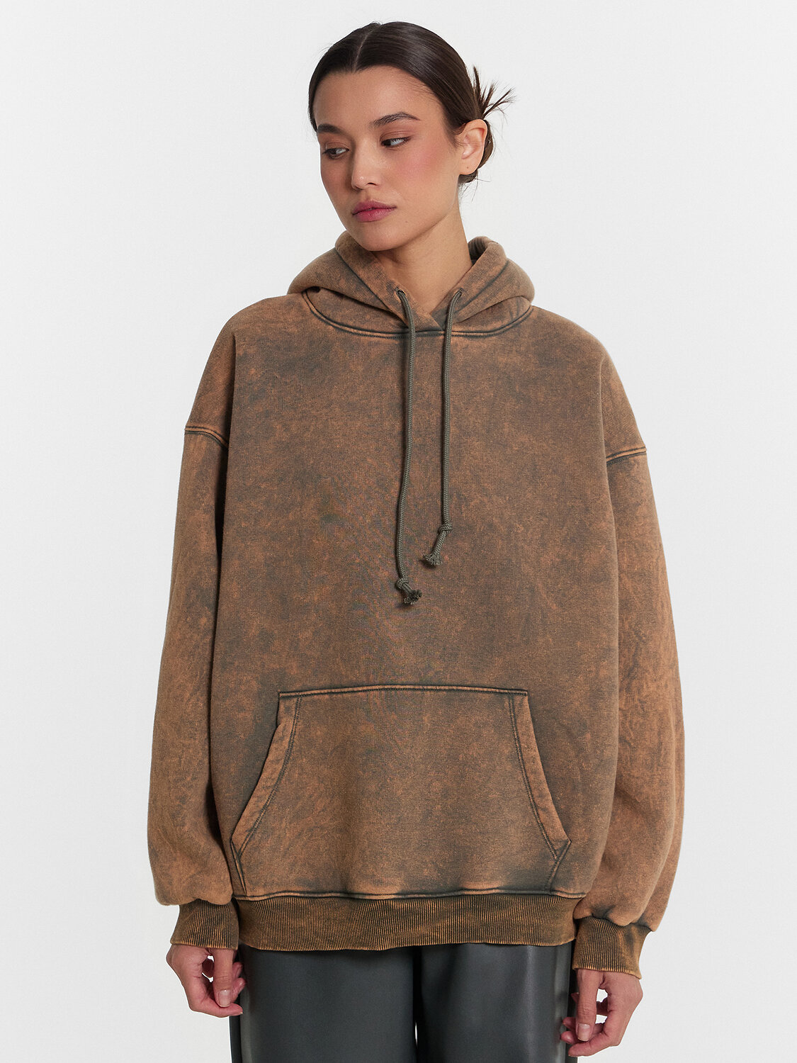 Женское худи оверсайз, выполненное из футера с подчесом, сочетает в себе стиль и комфорт. Капюшон на кулиске обеспечивает дополнительное тепло и защиту от непогоды. Длинные рукава с эластичными манжетами из рибаны и спущенная линия плеча подчеркивают современный и расслабленный стиль. Спереди – накладной карман кенгуру, который добавляет функциональности и удобства. Это худи станет незаменимой частью вашего гардероба, предоставляя уют и актуальный стиль в повседневной жизни.