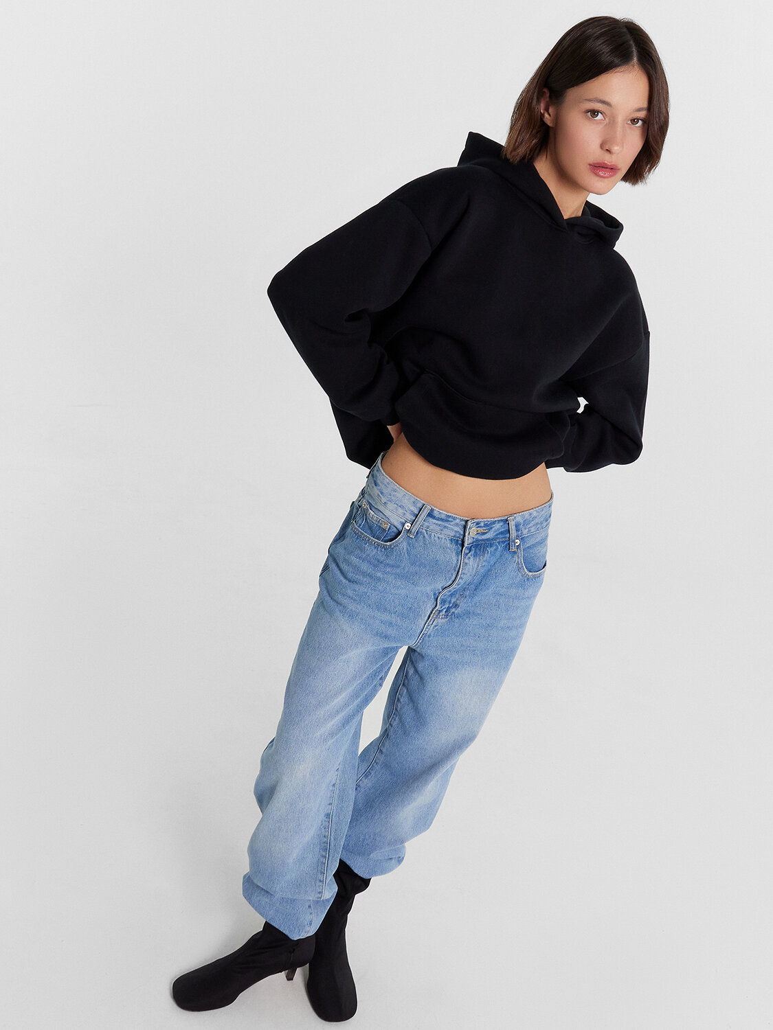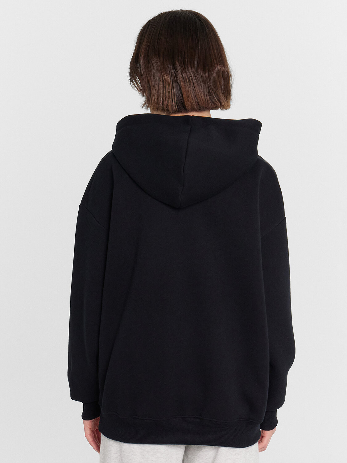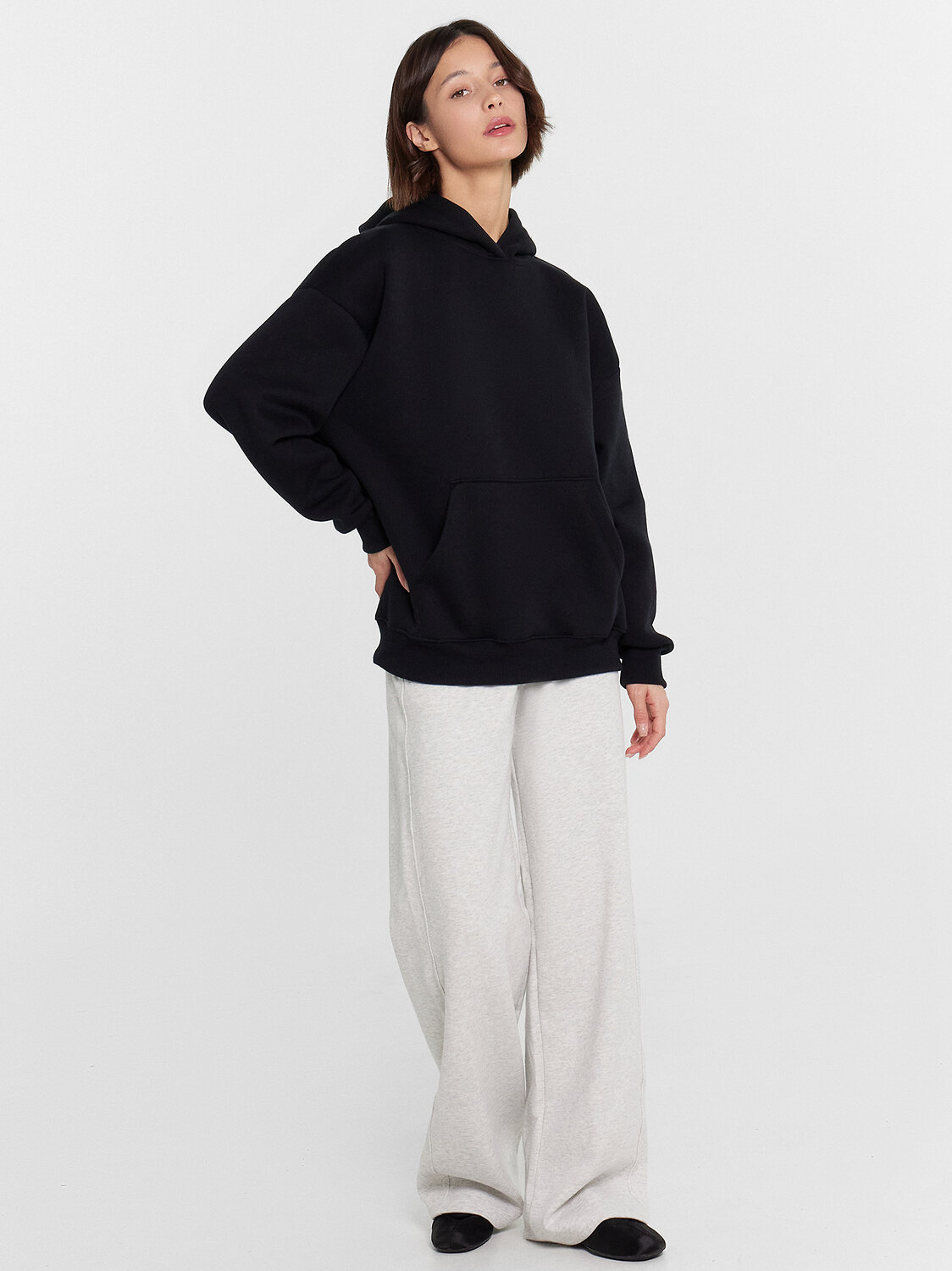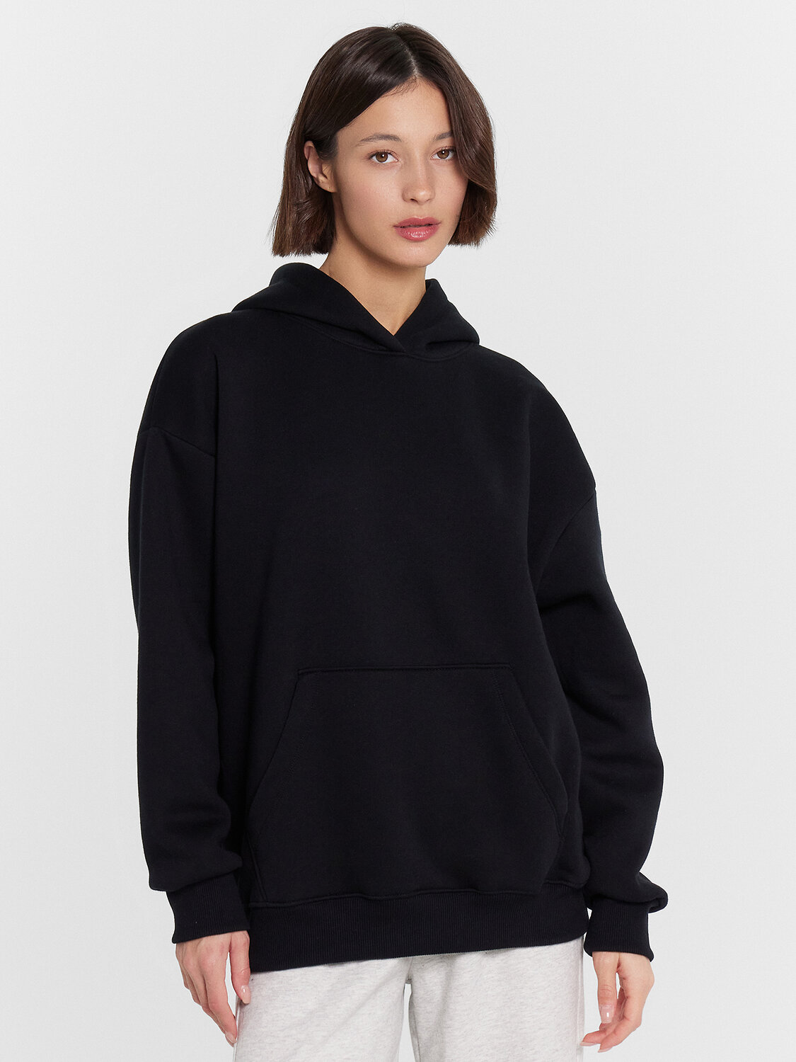 Анорак изготовлен из трикотажного полотна футер. Анорак свободного силуэта (оверсайз), с капюшоном. Горловина округлой формы. Капюшон со средним швом, на подкладке из осн. полотна. Плечо спущено, рукав втачной длинный. По низу рукава отрезная манжета из рибаны.