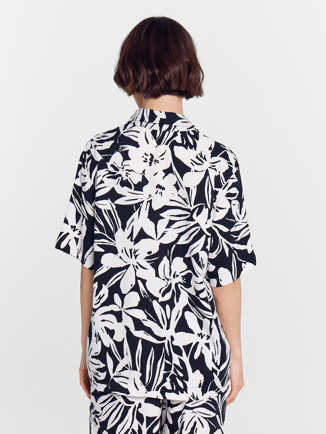 Горловина круглой формы с рубашечным воротником. Плечо спущено, пройма углублена. Рукав втачной, короткий. Низ рубашки прямой.