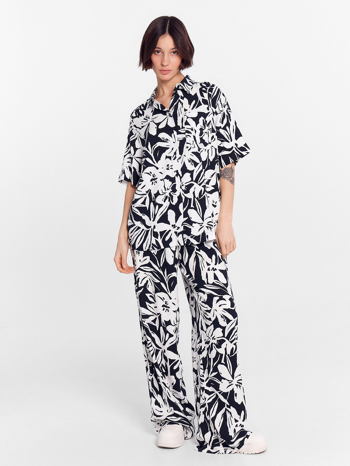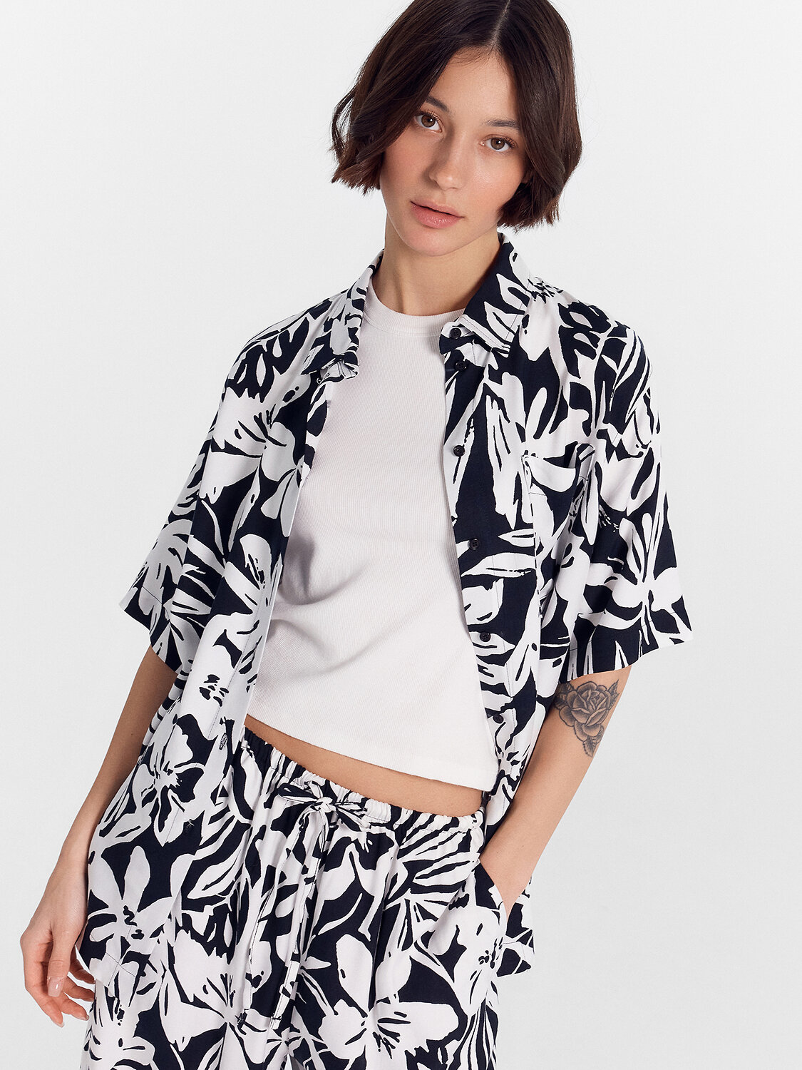 ст. цена1190руб.! MARK FORMELLE Рубашка 112855/1белые цветы на черном