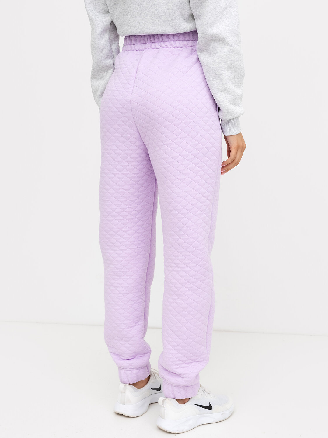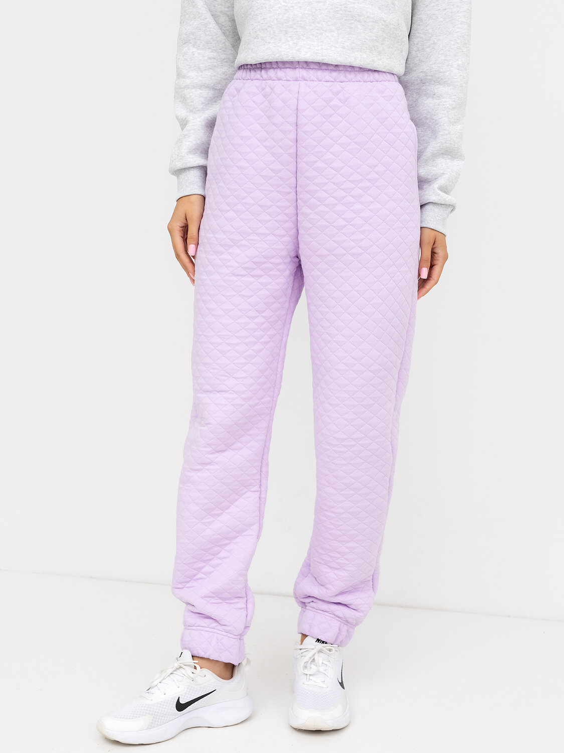 Брюки изготовлены из трикотажного полотна капитон. Брюки свободные оверсайз. Пояс цельнокроенный с эластичной тесьмой внутри. В боковых швах расположены карманы, подкладка кармана из кулирки. Низ брюк с цельнокроенными манжетами с эластичной тесьмой внутри.